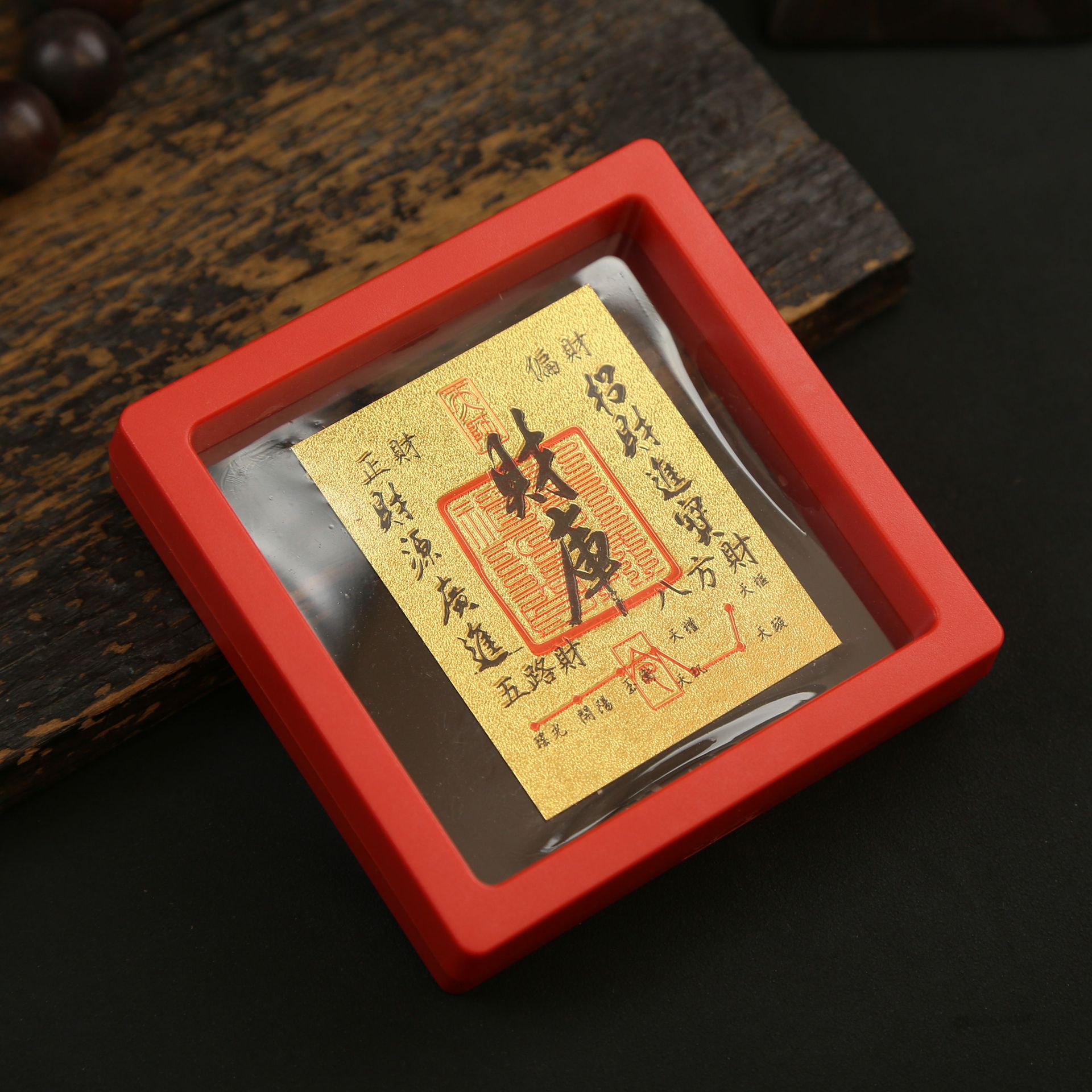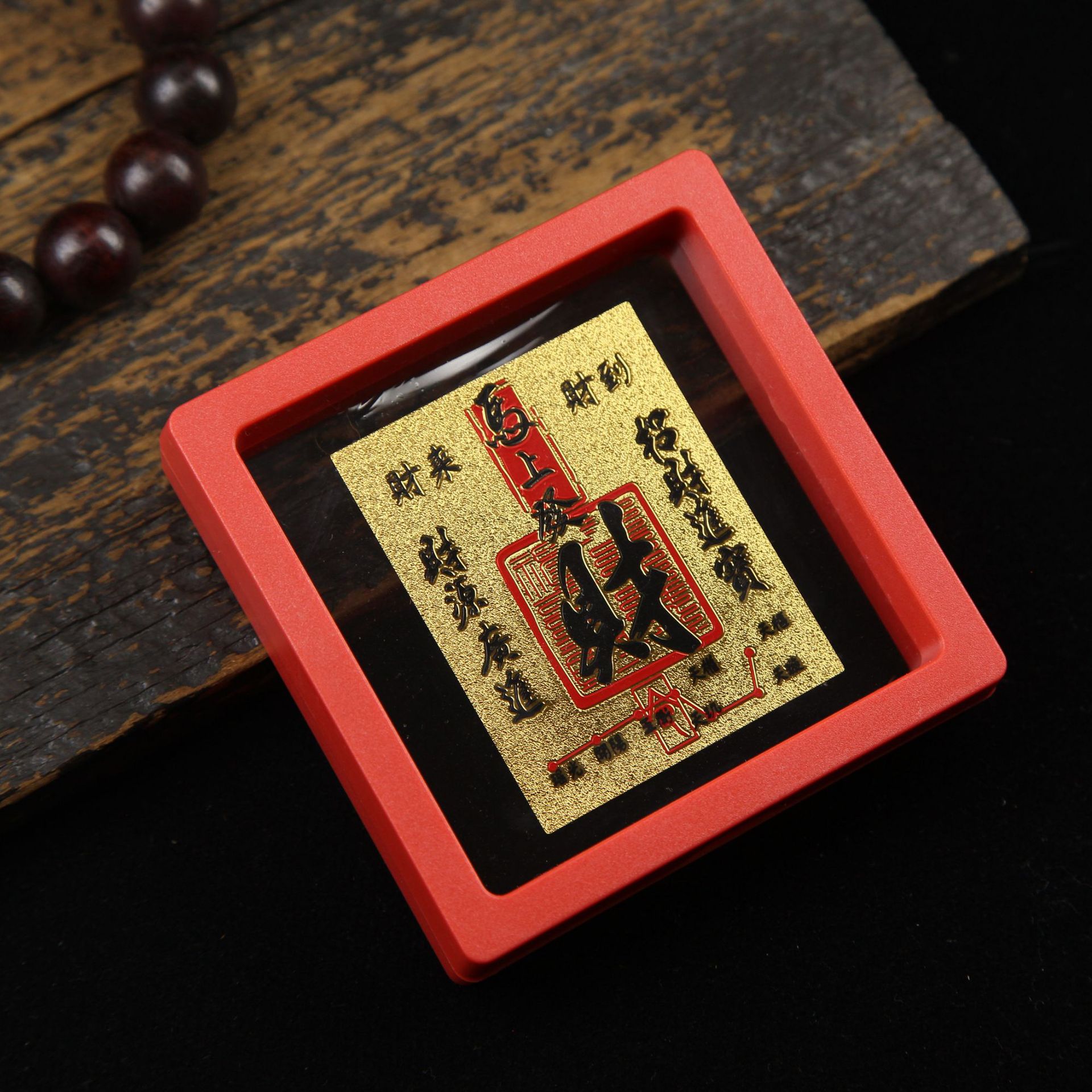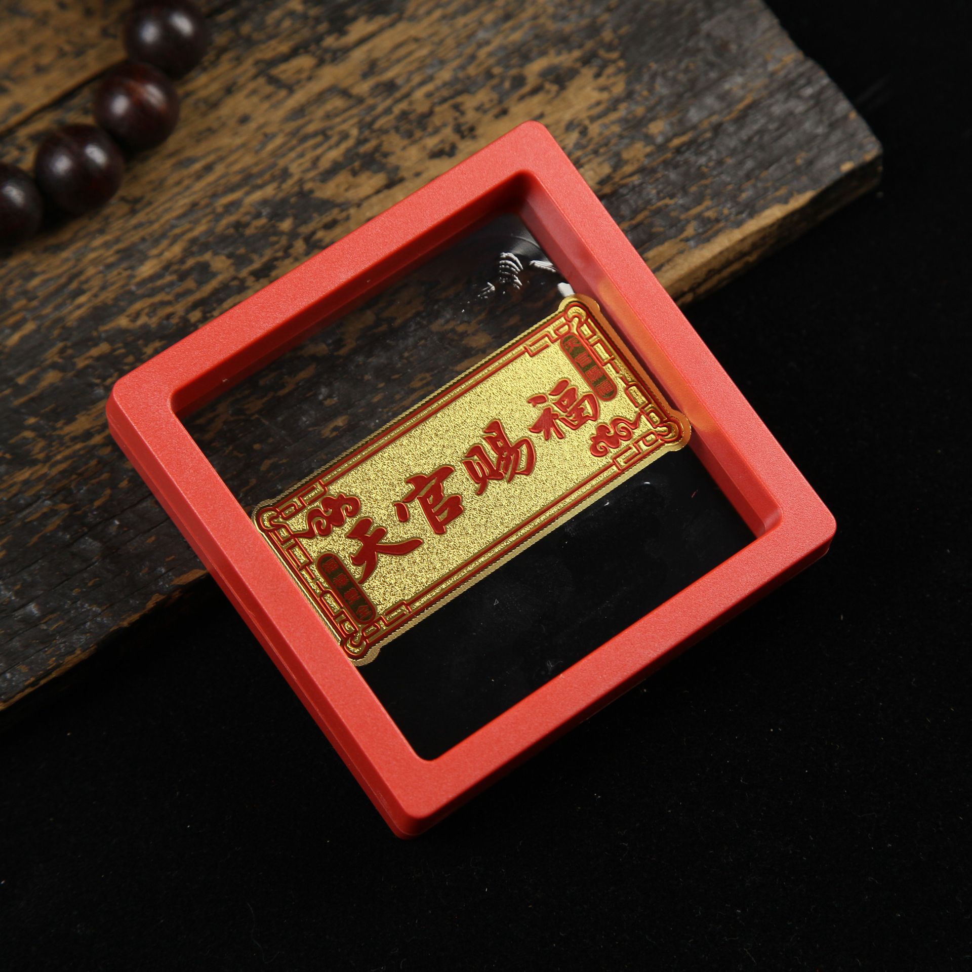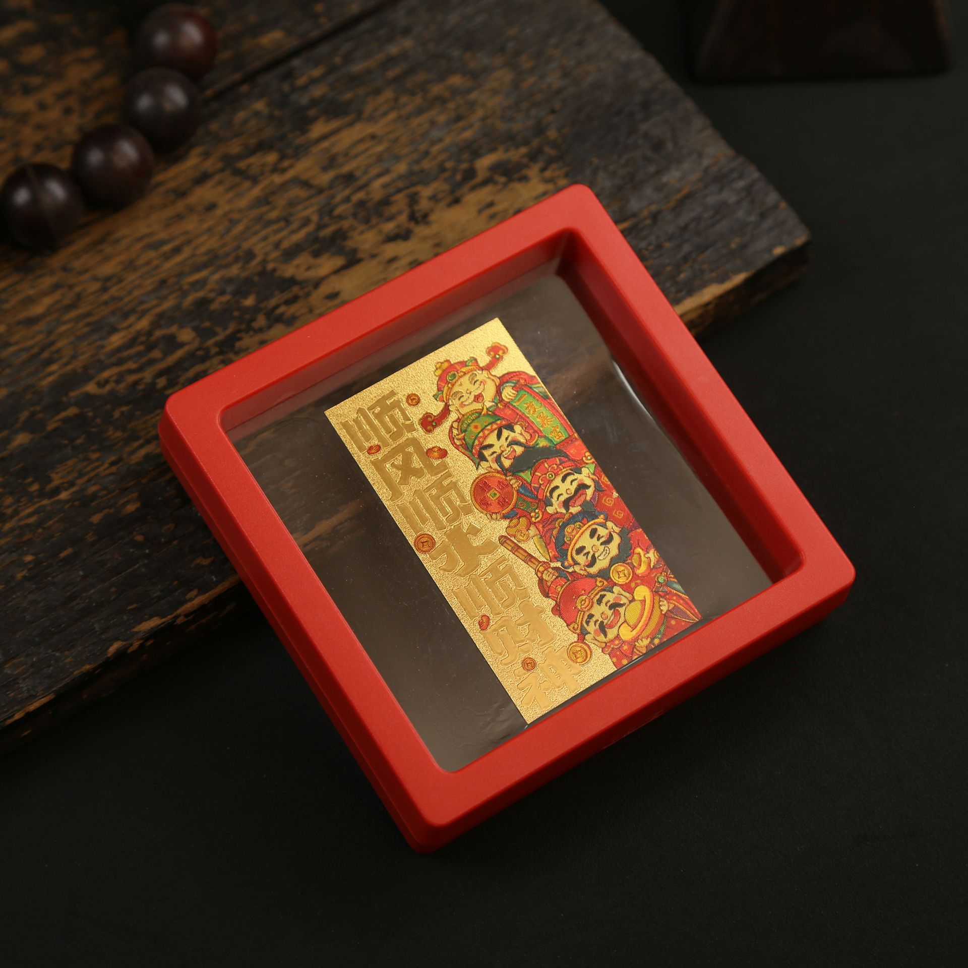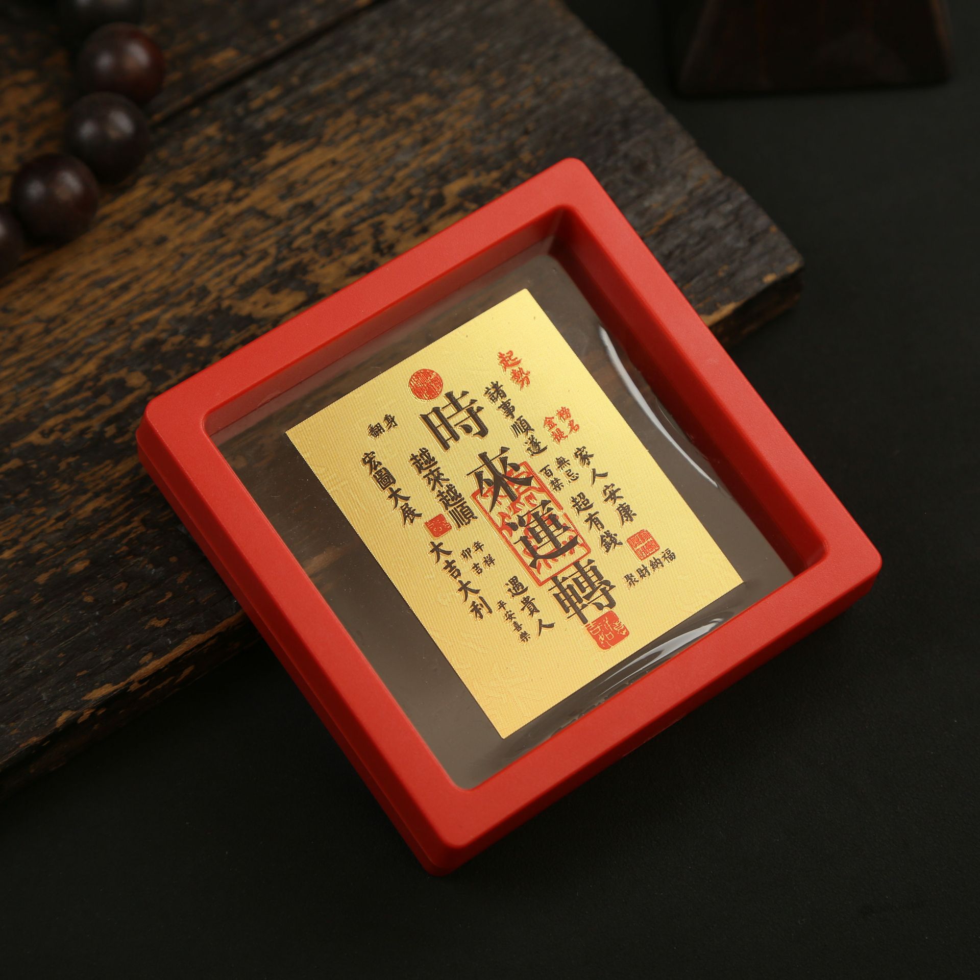 • 아크릴 레드 박스(크기 9*9*2cm) 골든 파프 스티커-Qishi