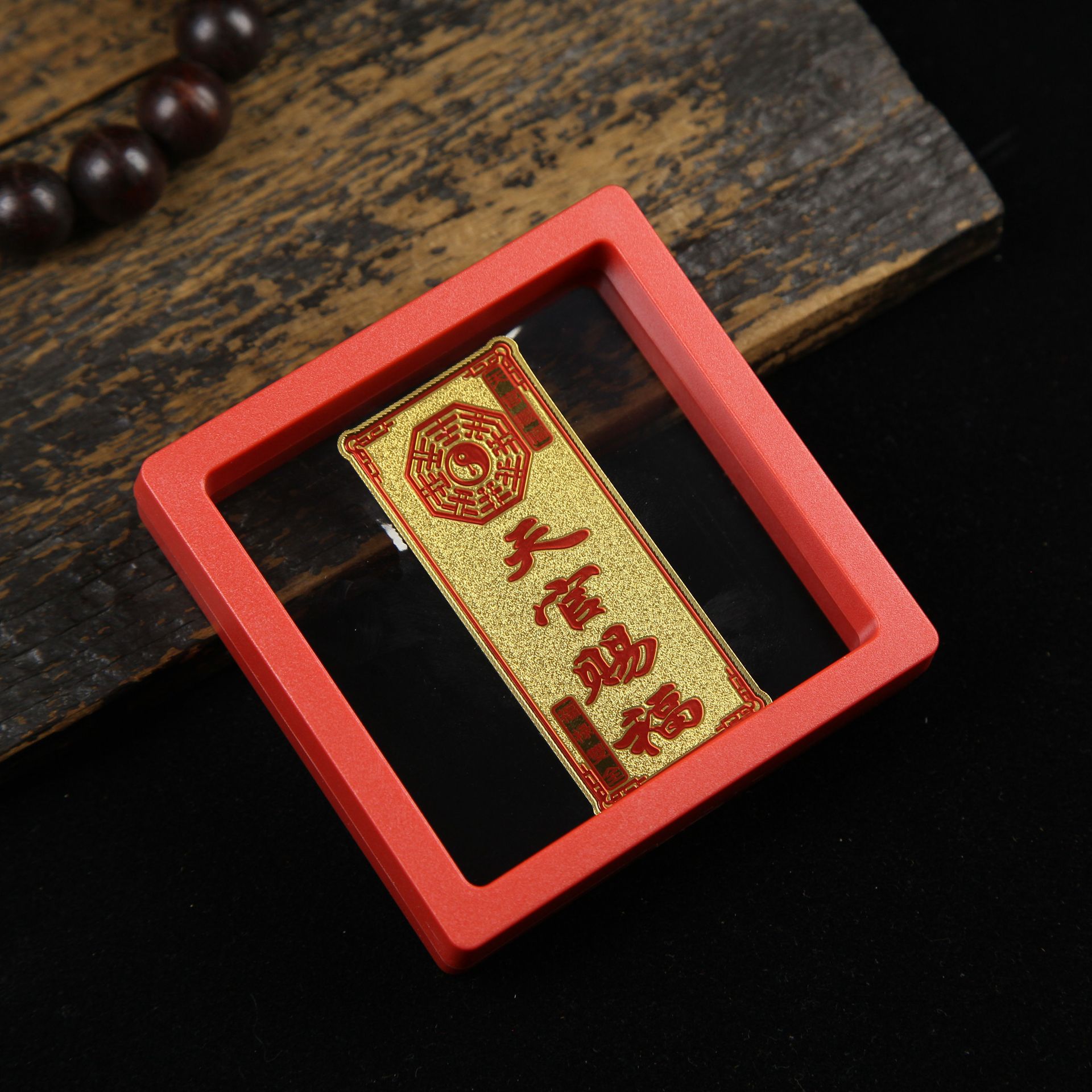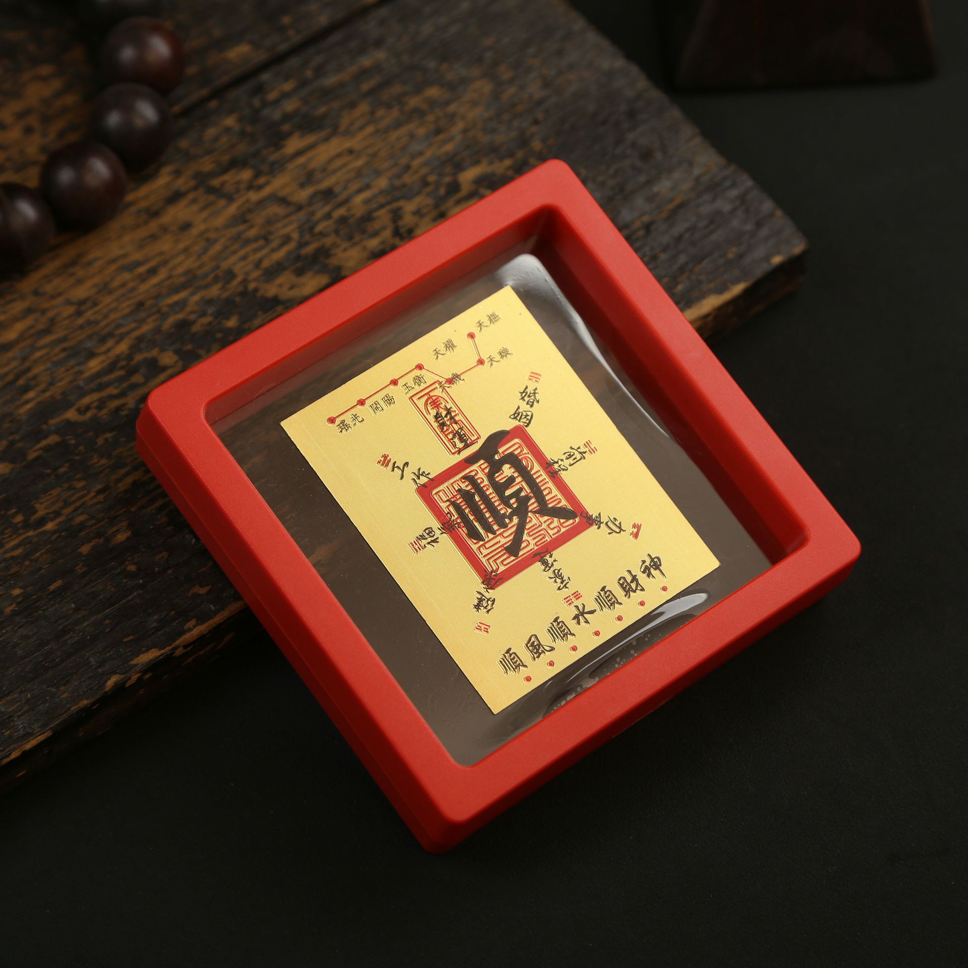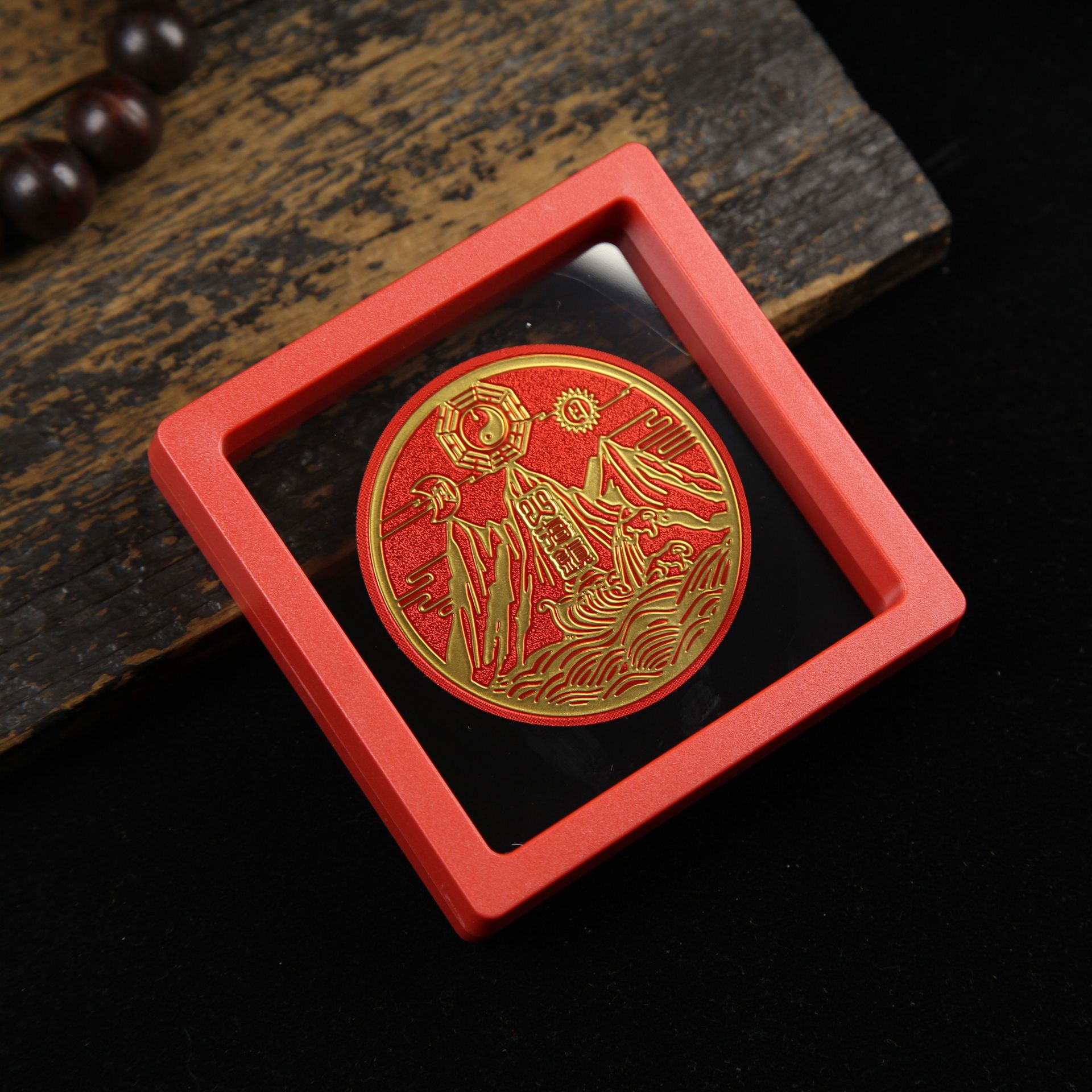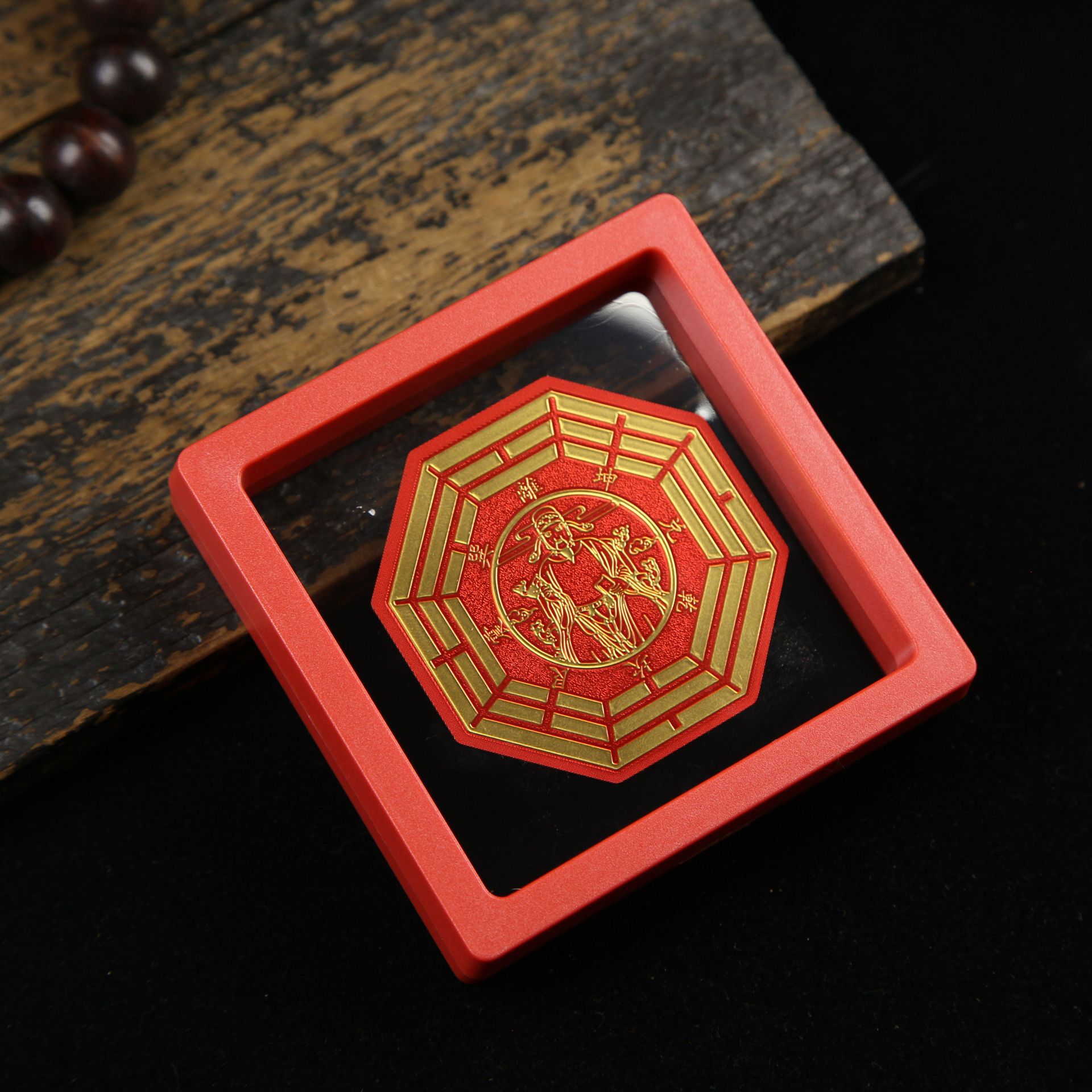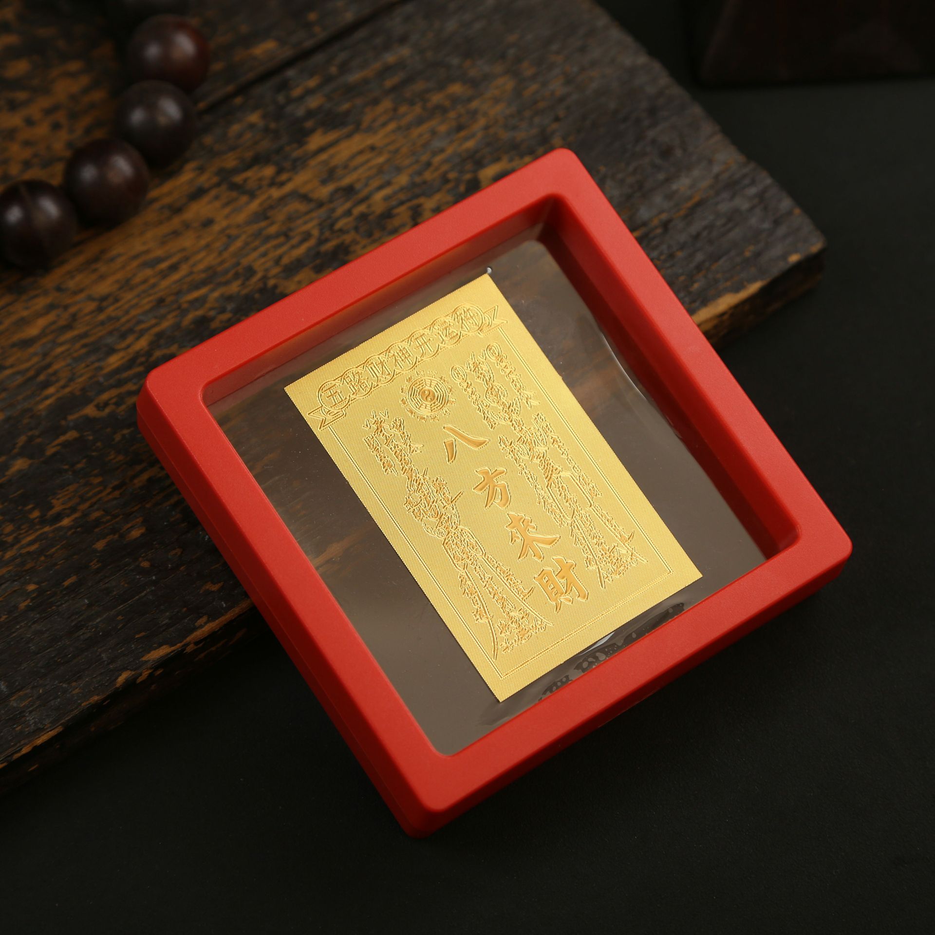• 아크릴 레드 박스(크기 9*9*2cm) 골든 파프 스티커-Qishi