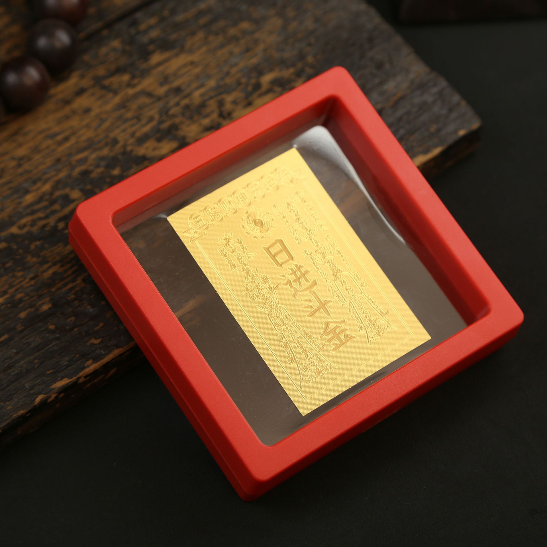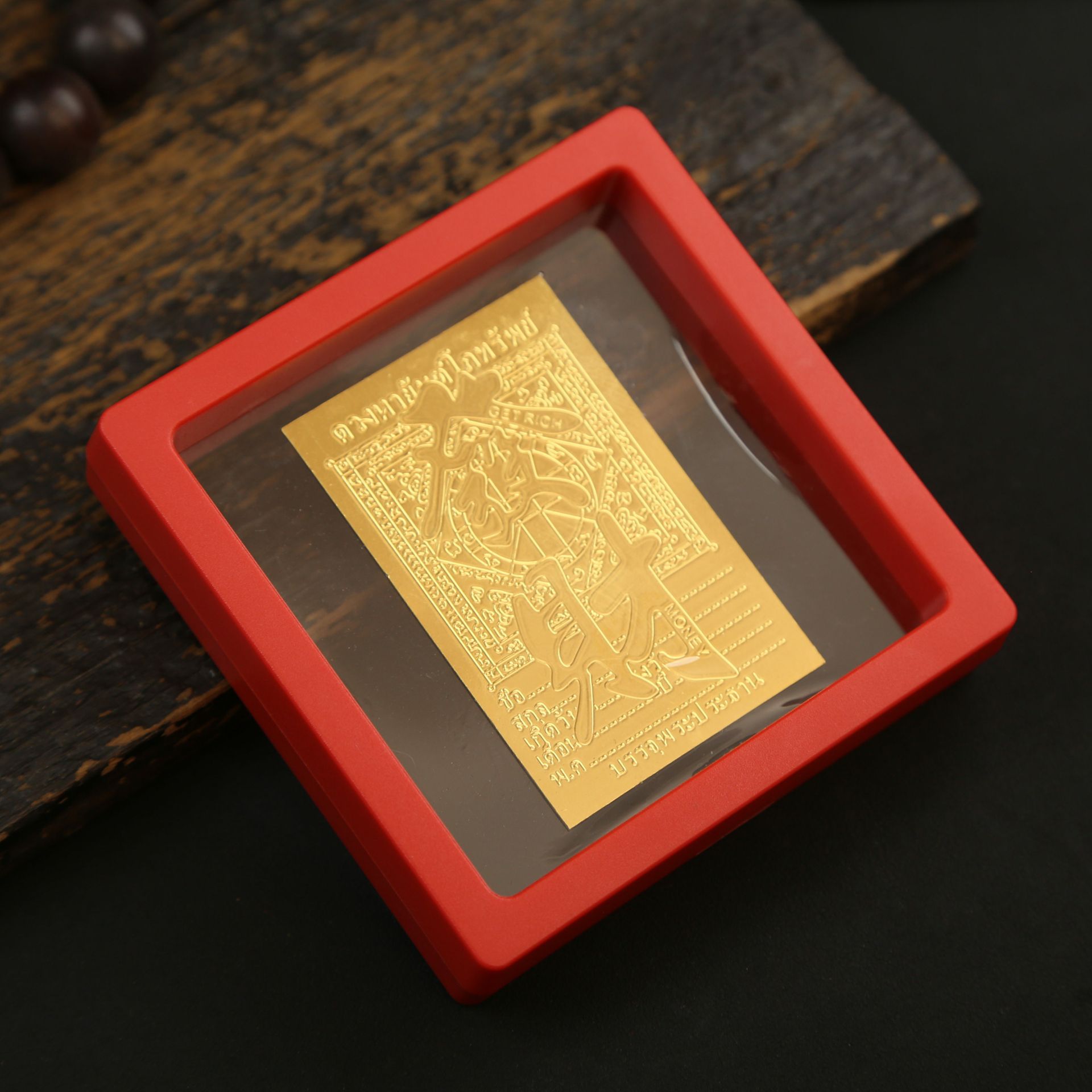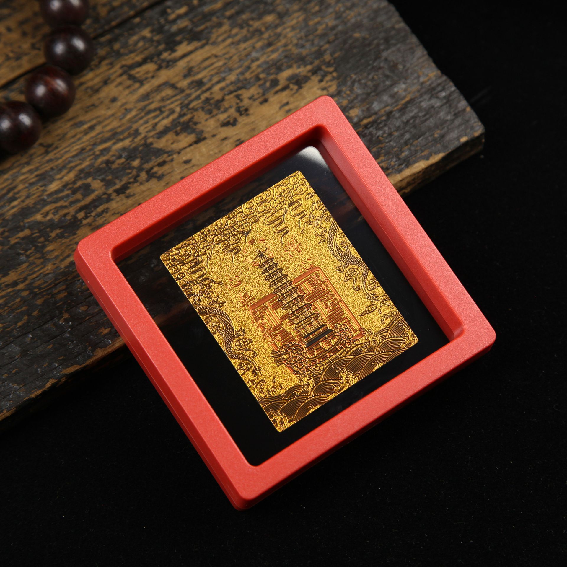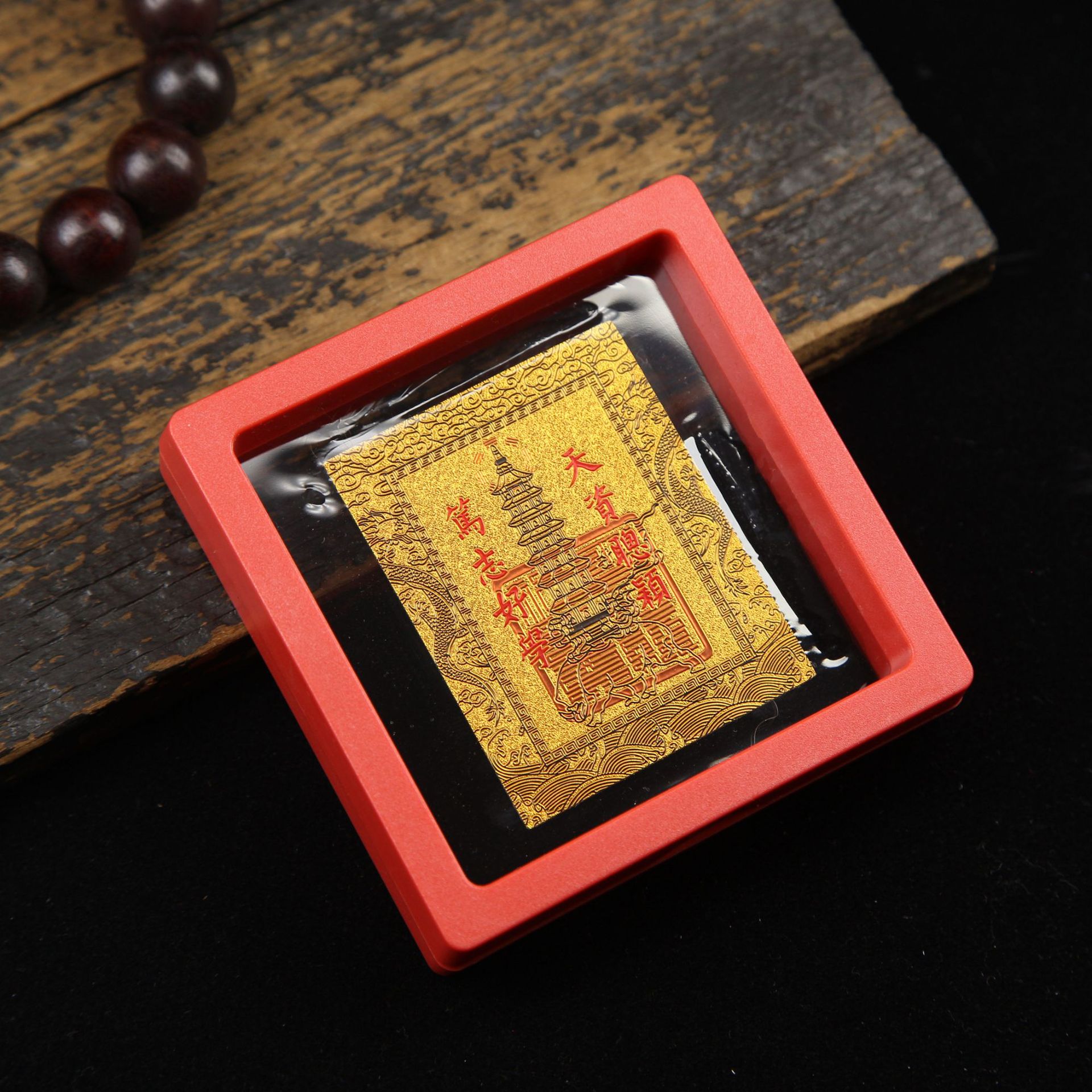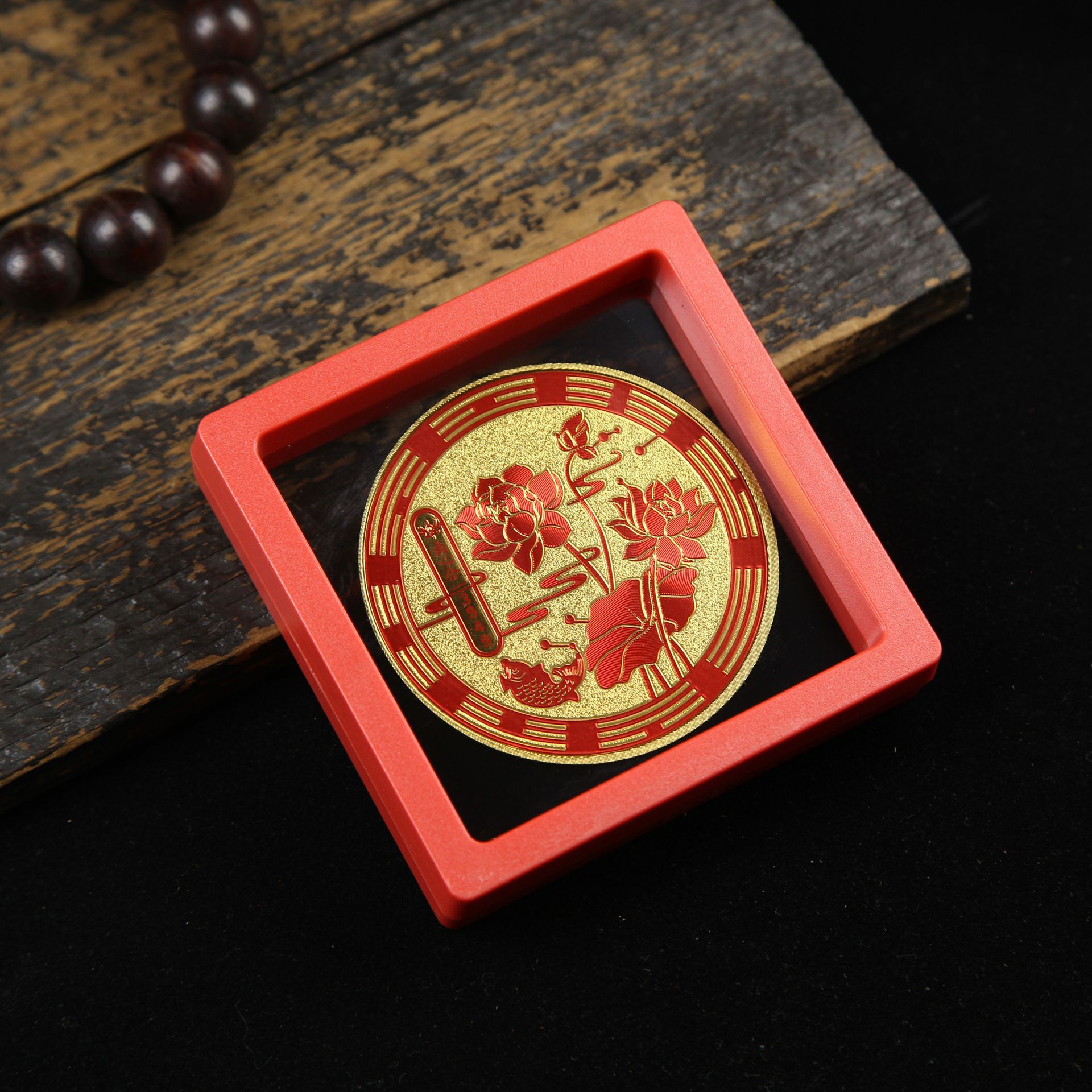 • 아크릴 레드 박스(크기 9*9*2cm) 골든 파프 스티커-Qishi