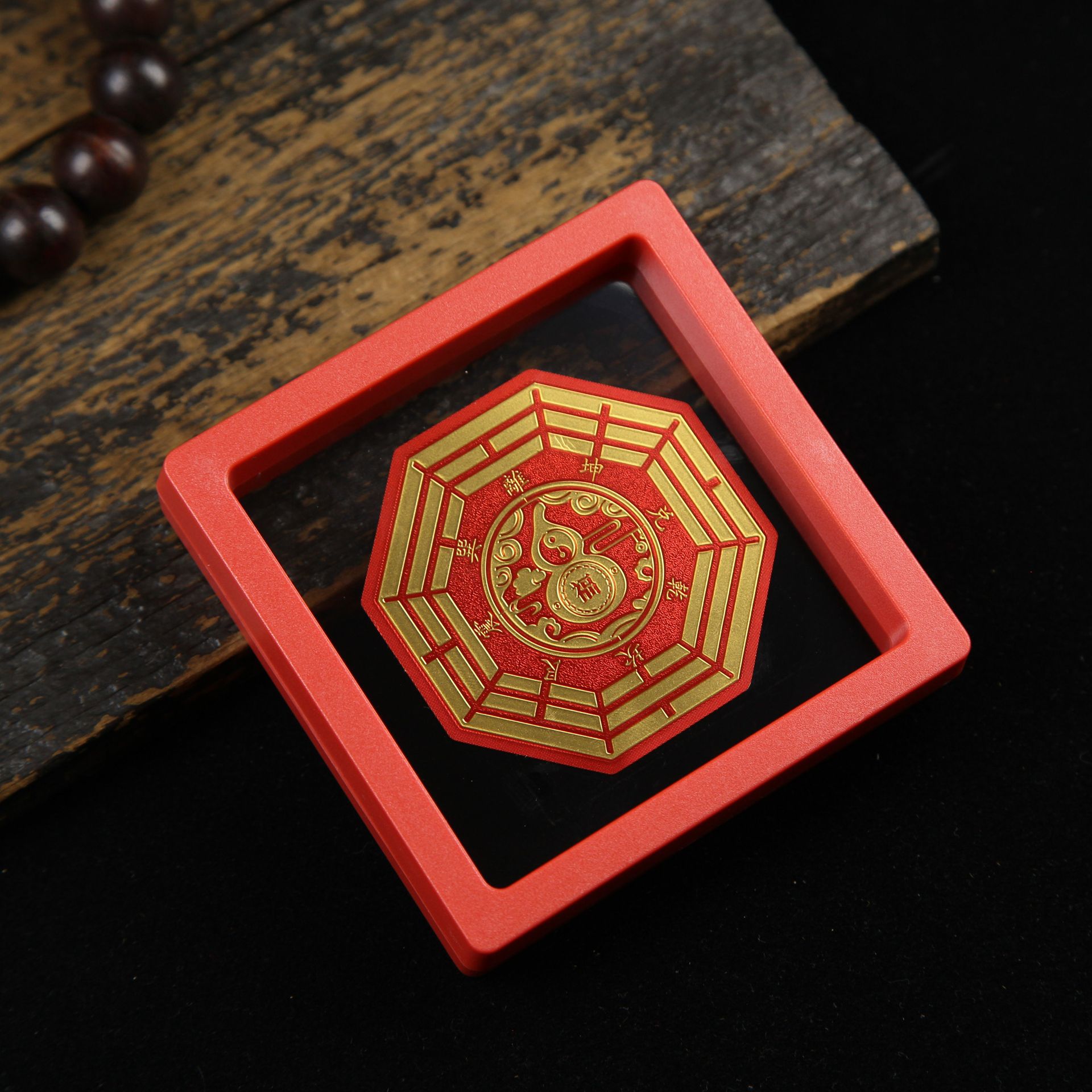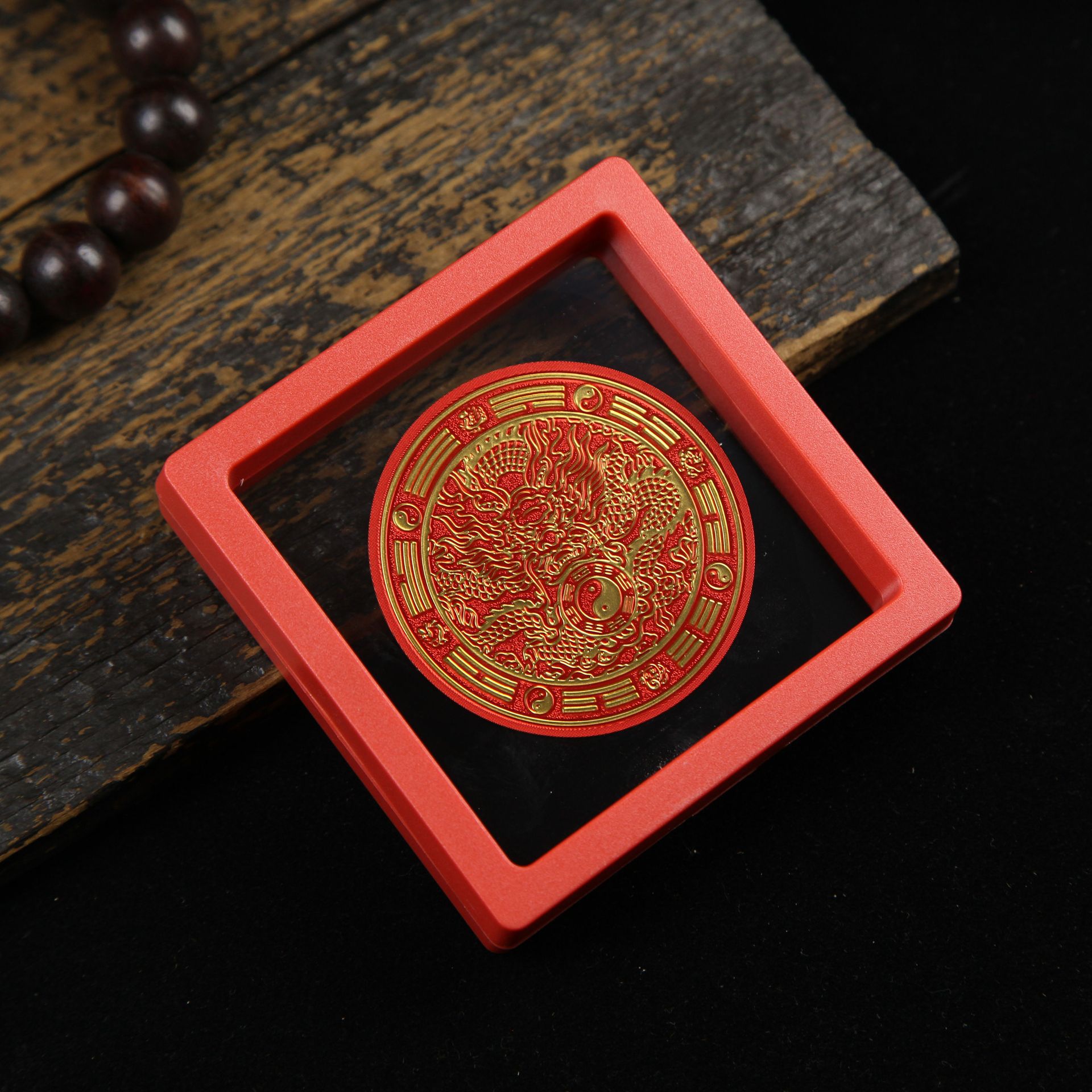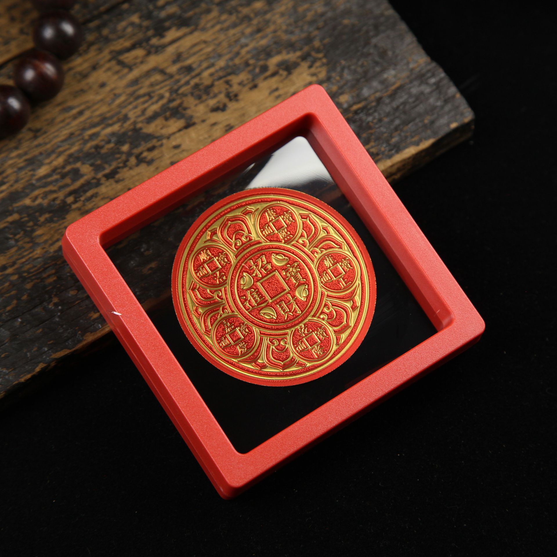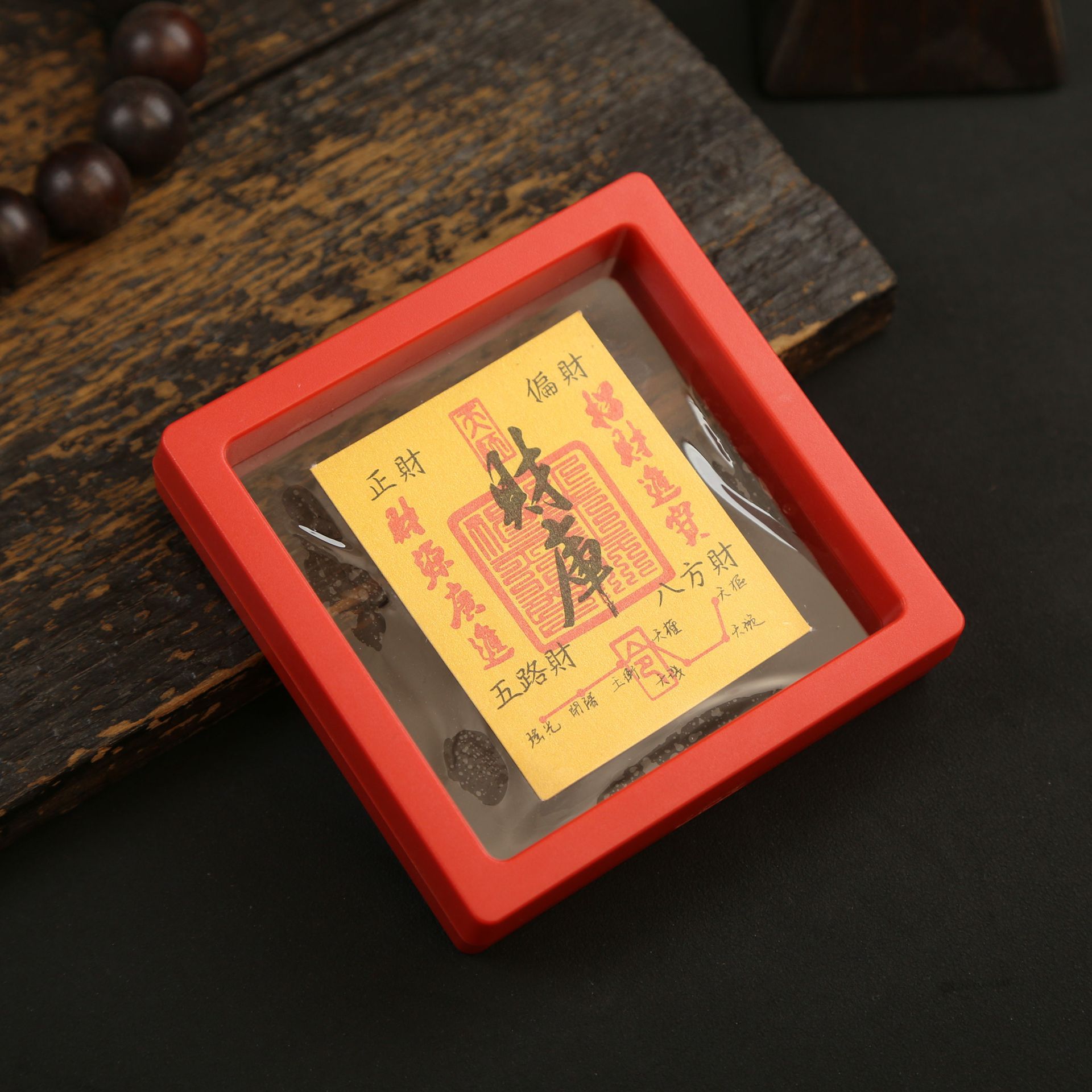 • 아크릴 레드 박스(사이즈 9*9*2cm) - 부와 보물을 끌어들이는 둥근 오제 레드 스티커