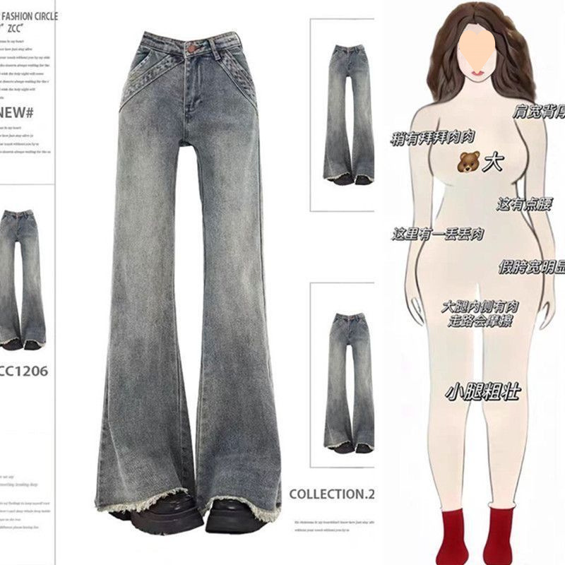 플러스 사이즈 미국식 레트로 마이크로 플레어 모피 엣지 청바지 여성의 가을 느슨한 슬림 넓은 다리 바지스토어 가기