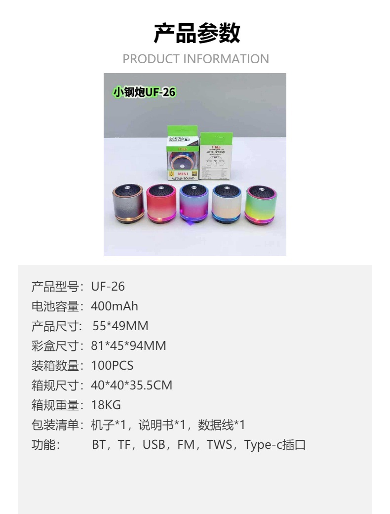 대외 무역 새로운 알루미늄 합금 작은 강철 총 블루투스 오디오 무선 카드 서브 우퍼 선물 휴대용 미니 플레이어