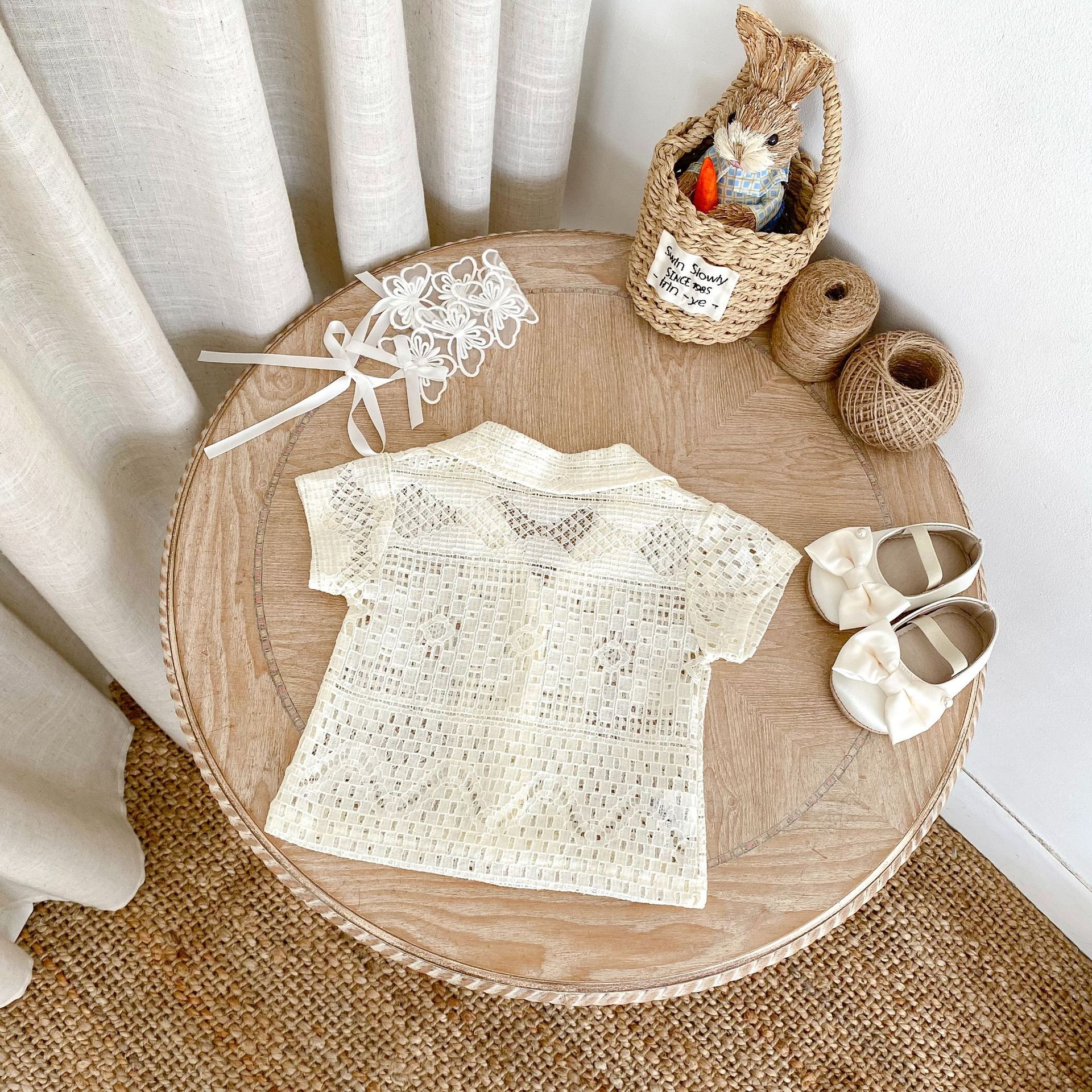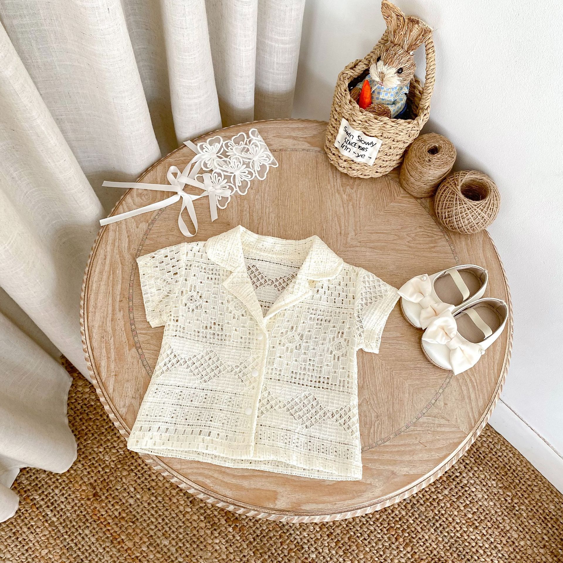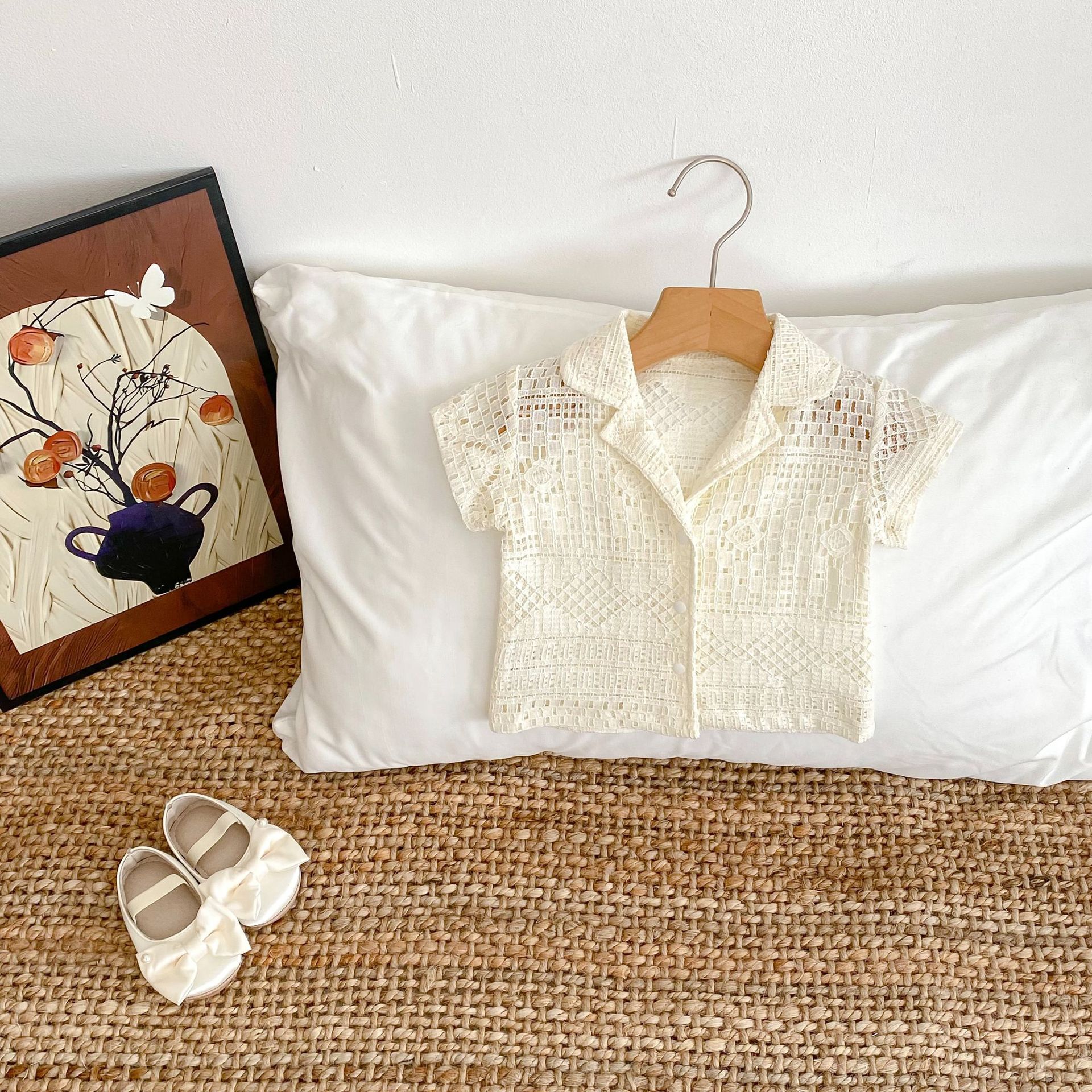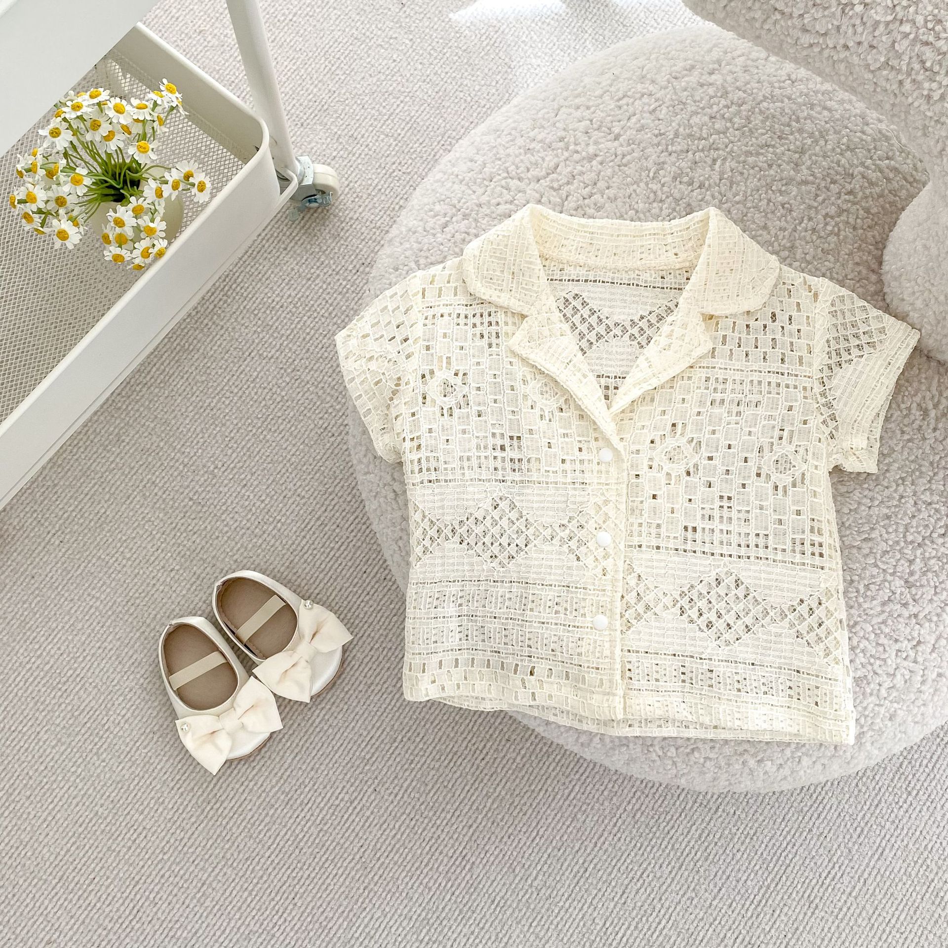 유아 및 어린이 남아 여아 2026 여름 라펠 반팔 셔츠, 가볍고 트렌디한 레이스 탑스토어 가기