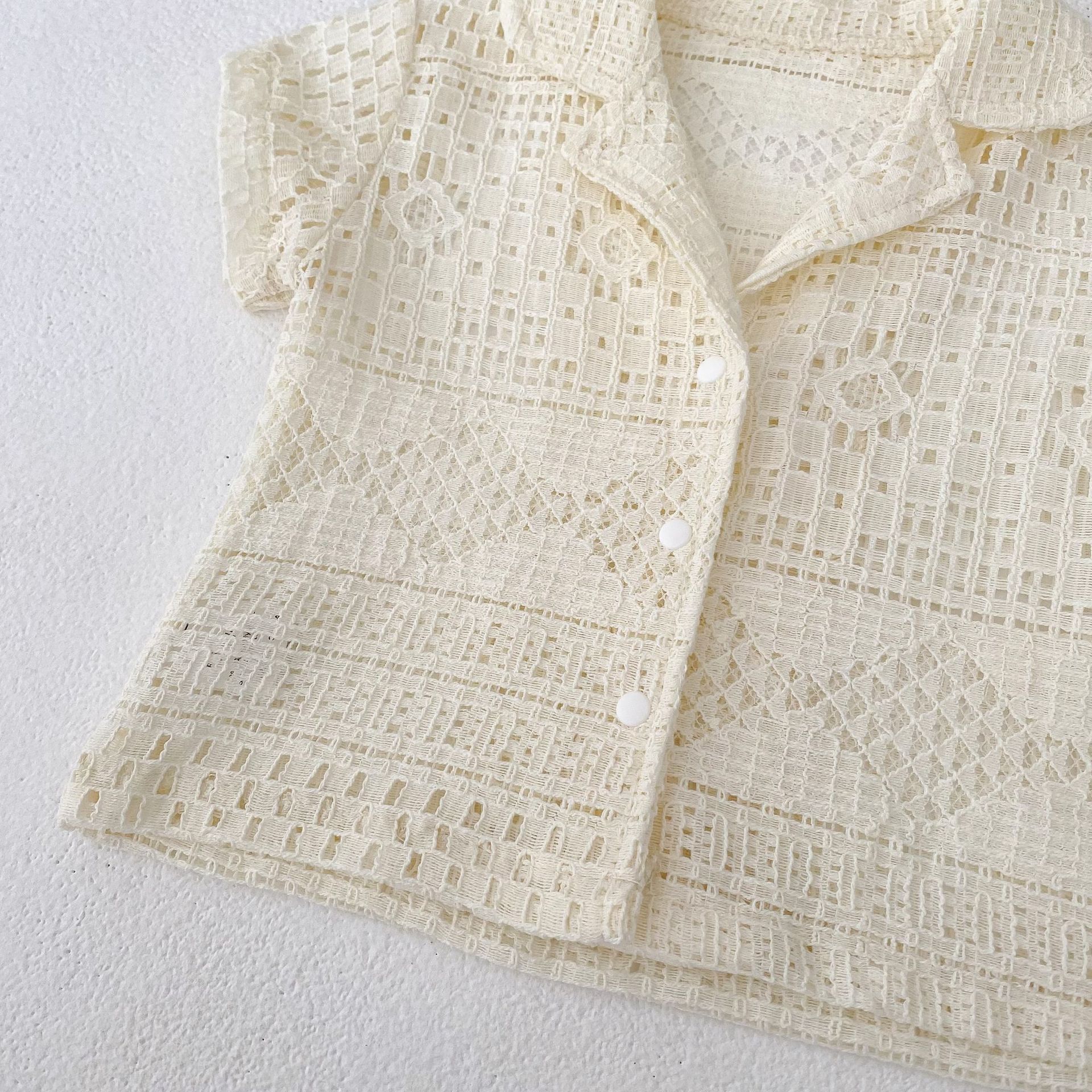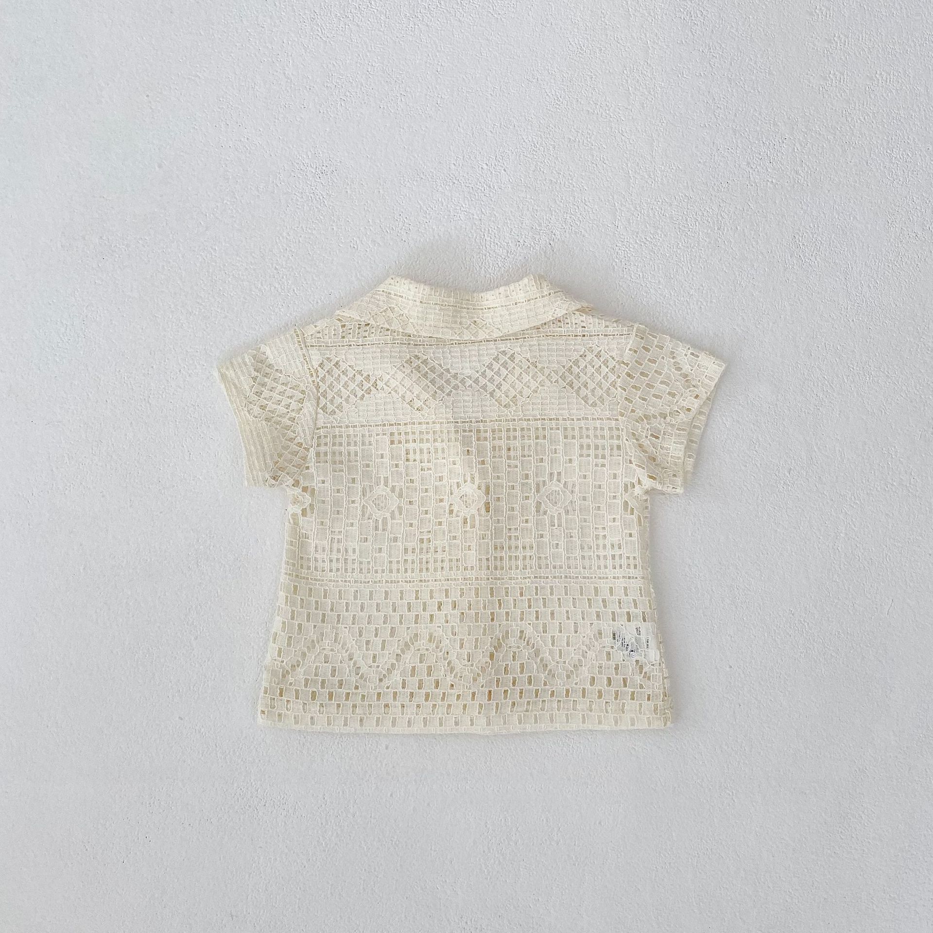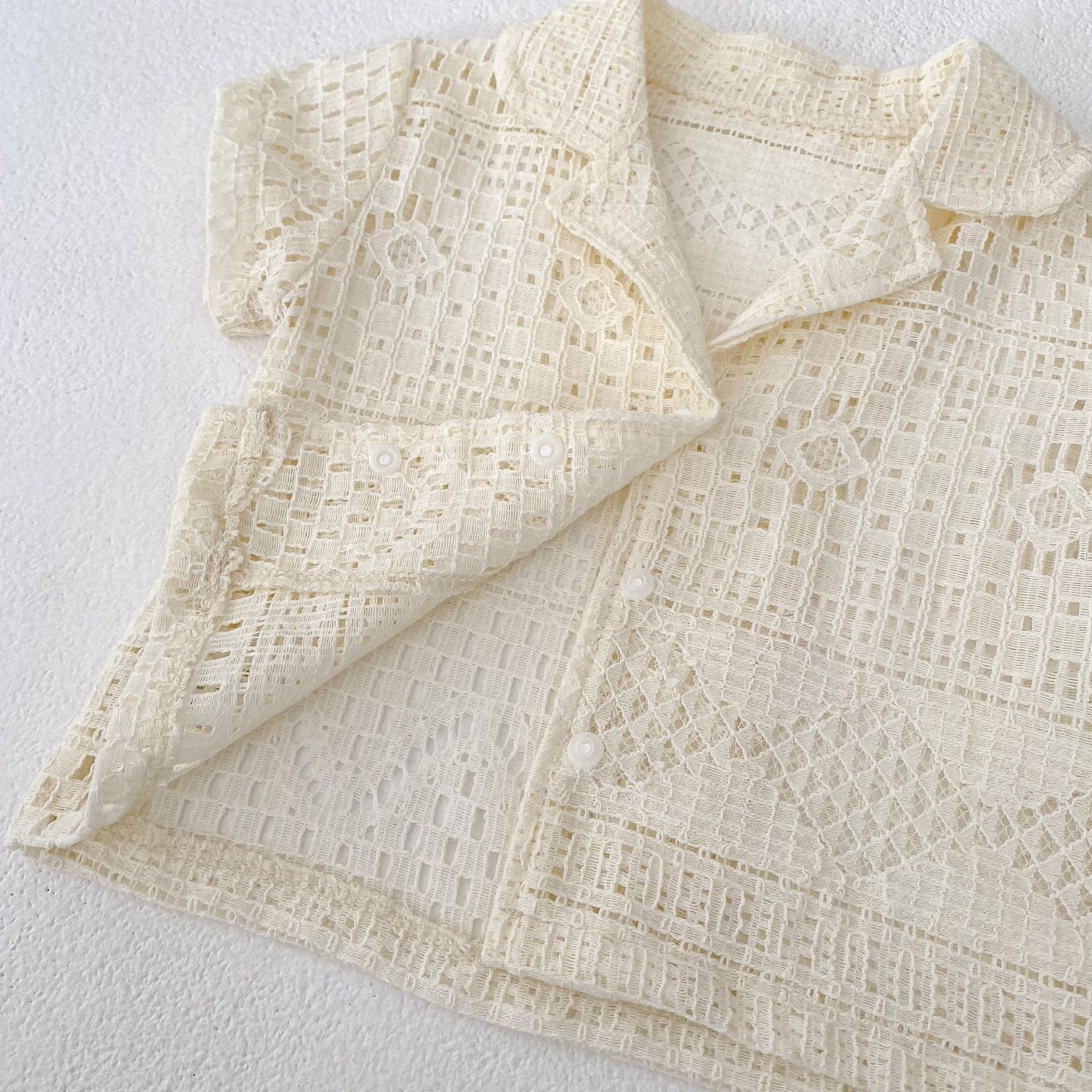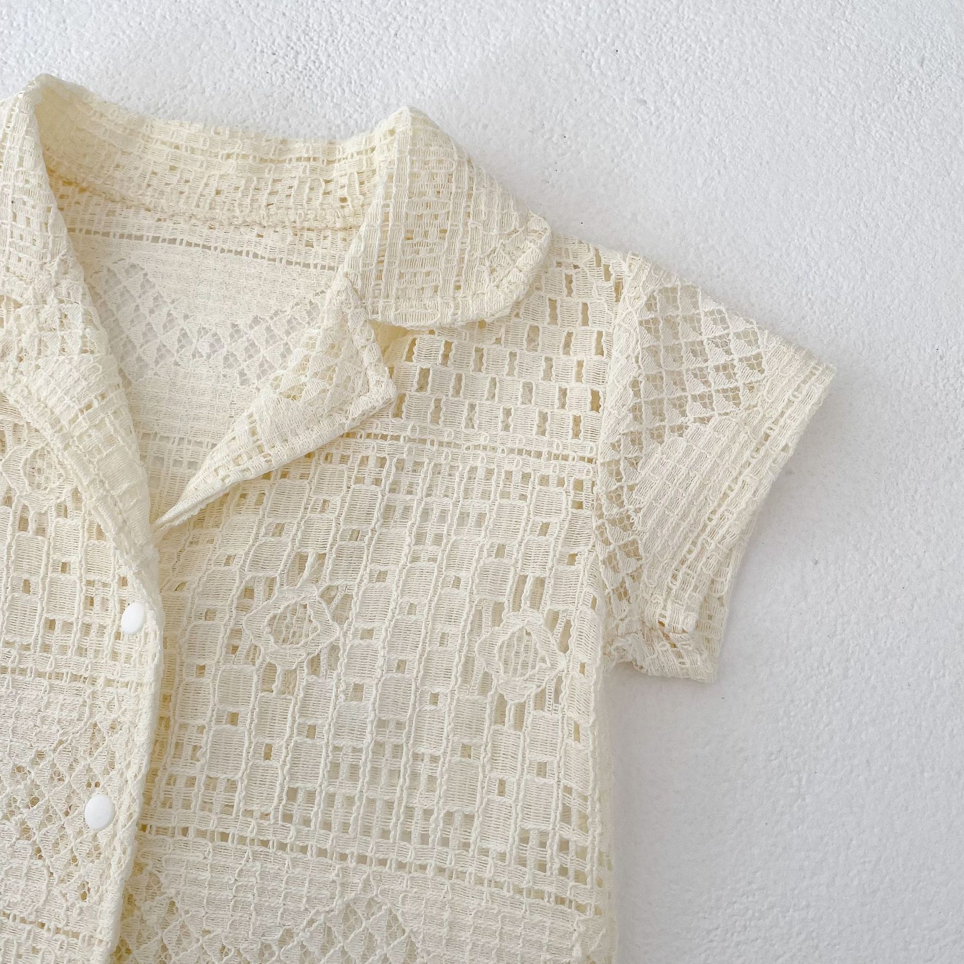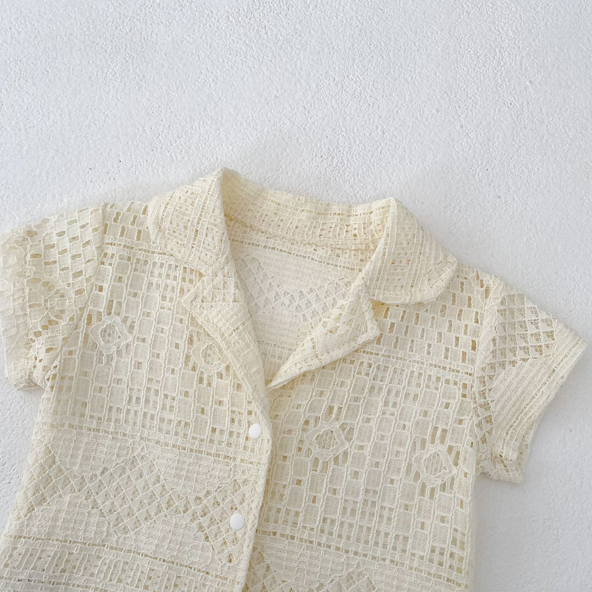 유아 및 어린이 남아 여아 2026 여름 라펠 반팔 셔츠, 가볍고 트렌디한 레이스 탑