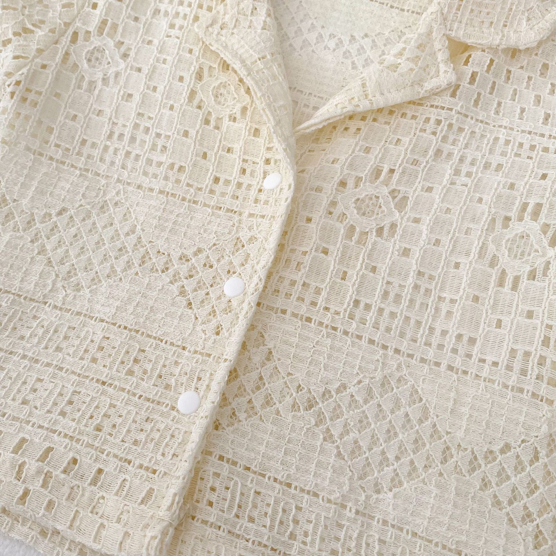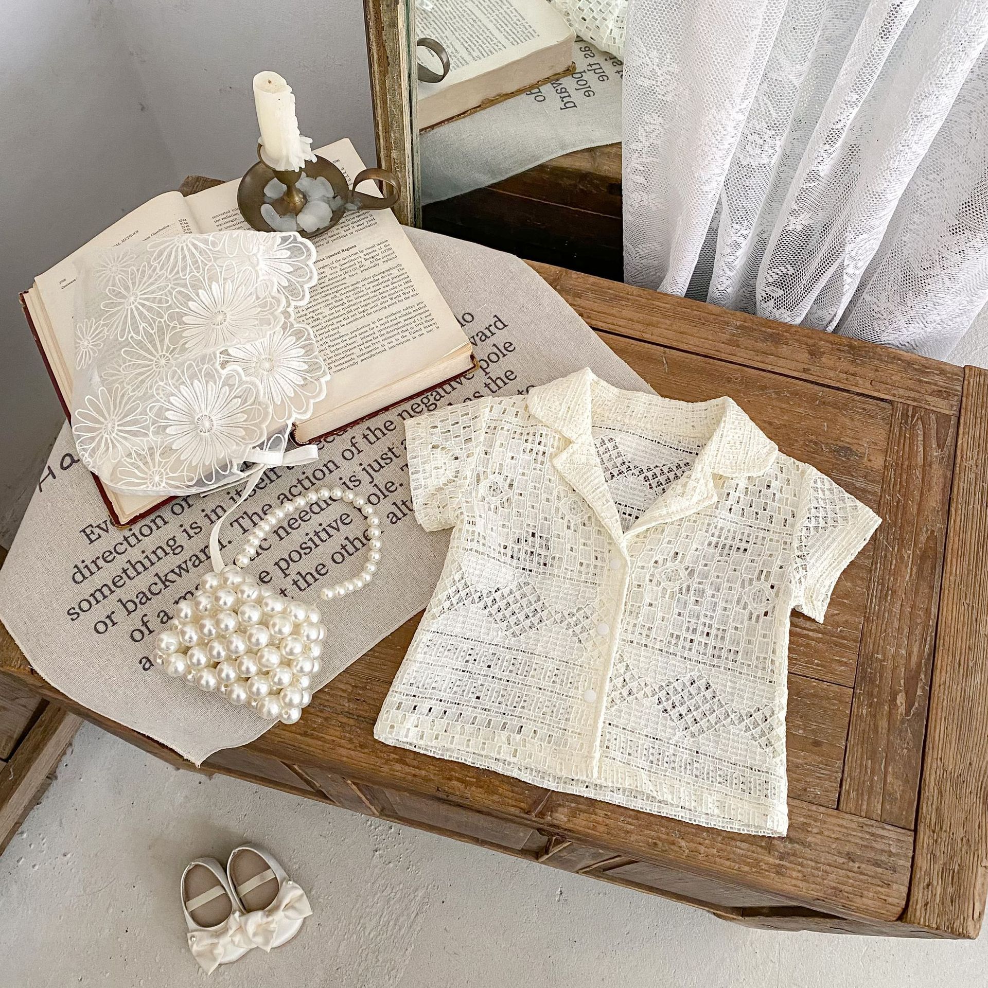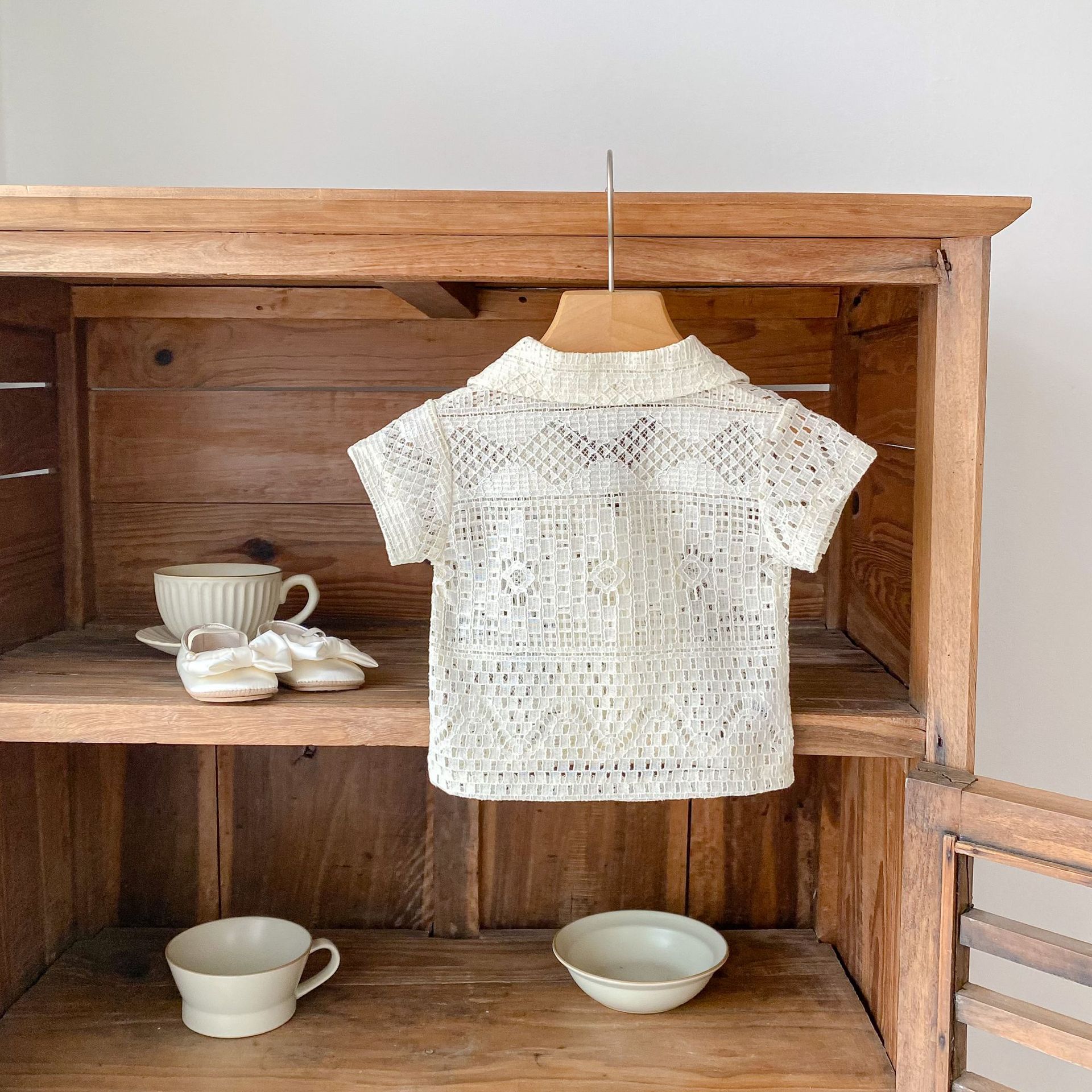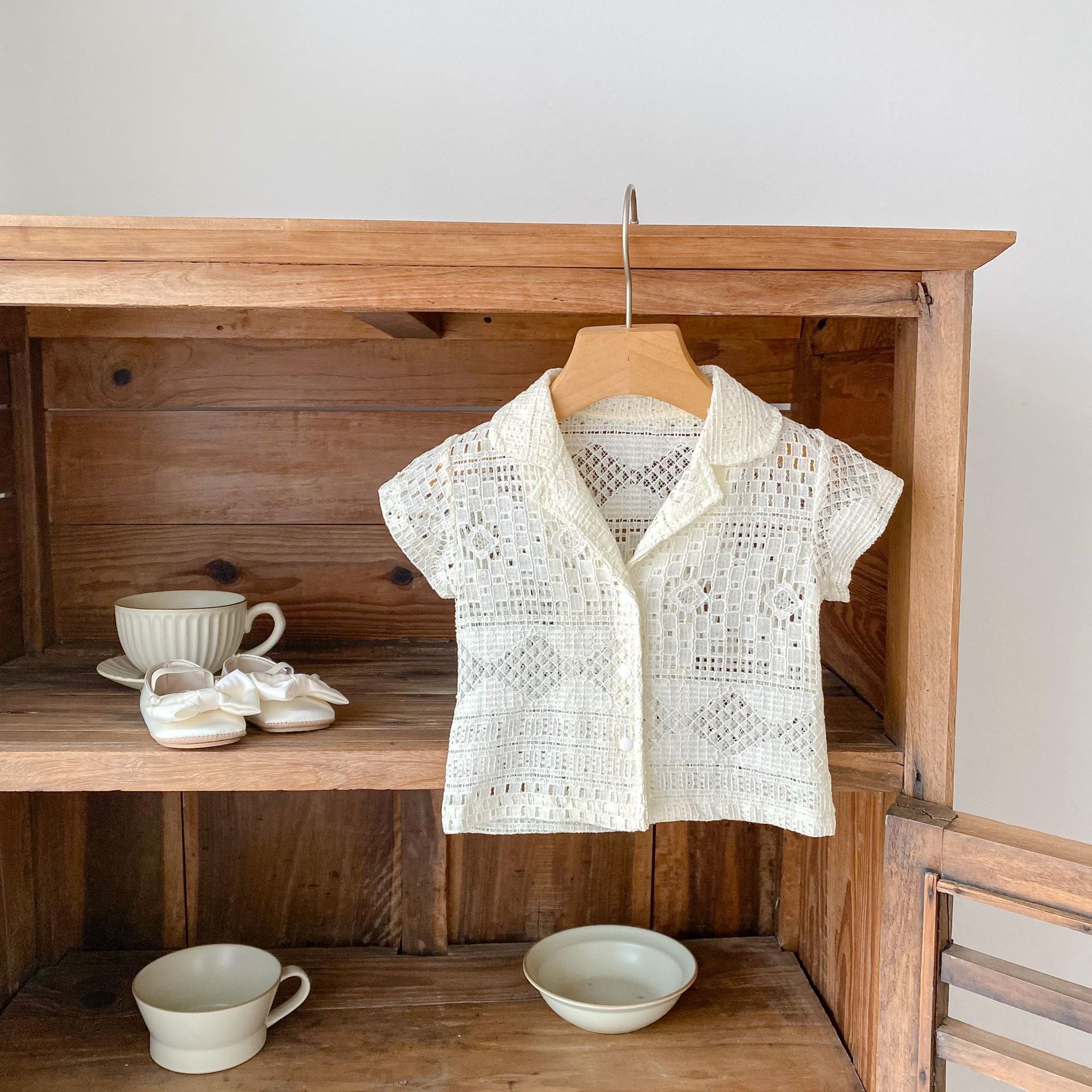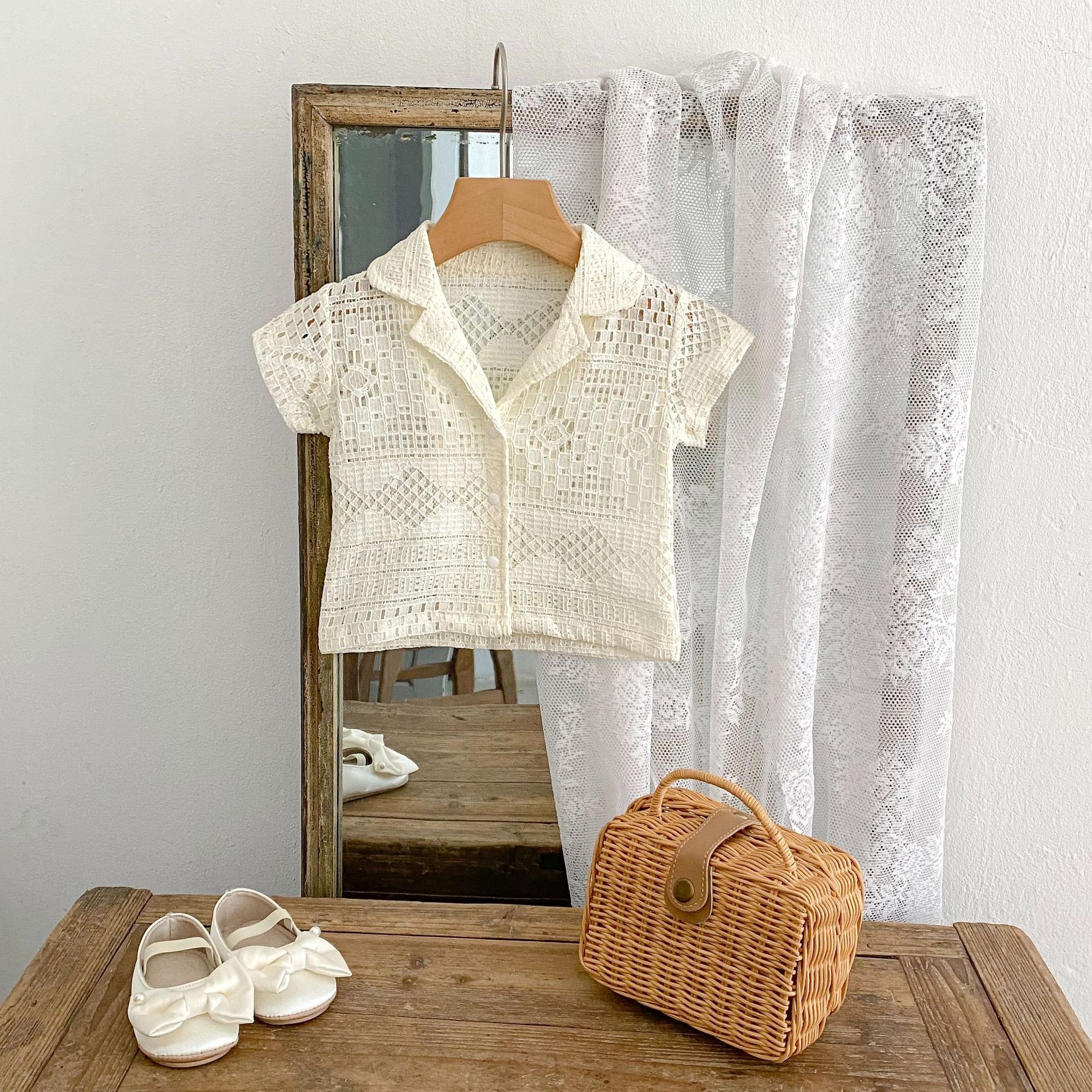 유아 및 어린이 남아 여아 2026 여름 라펠 반팔 셔츠, 가볍고 트렌디한 레이스 탑