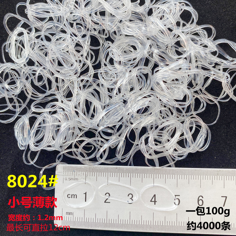 • 8024 얇은 소형 투명 고무밴드, 50g 팩, 약 2000개