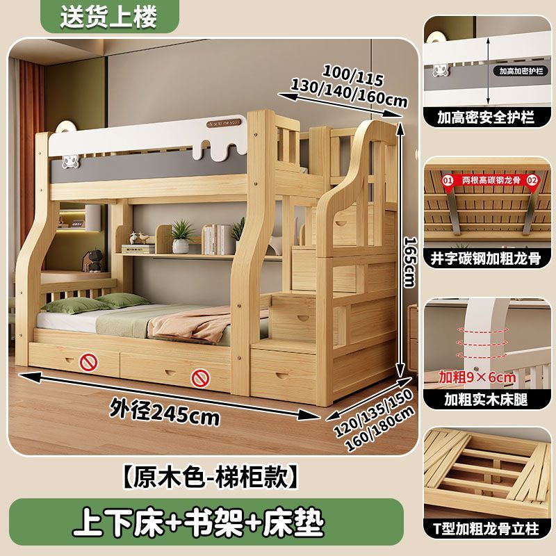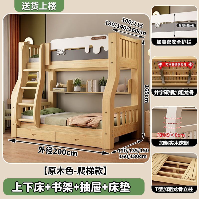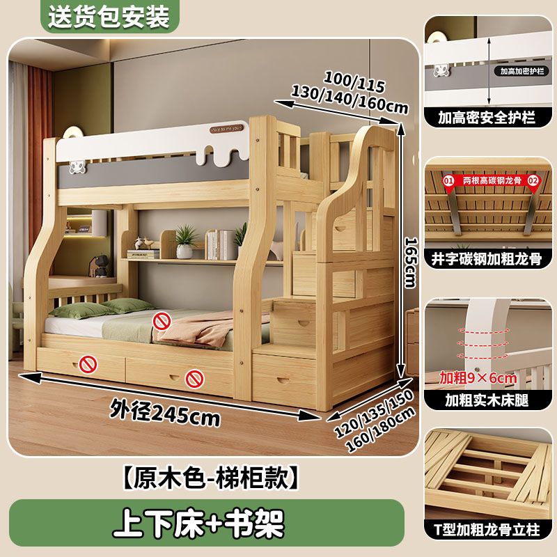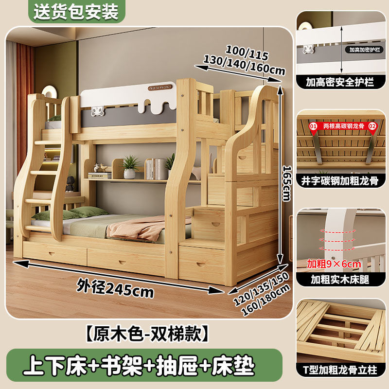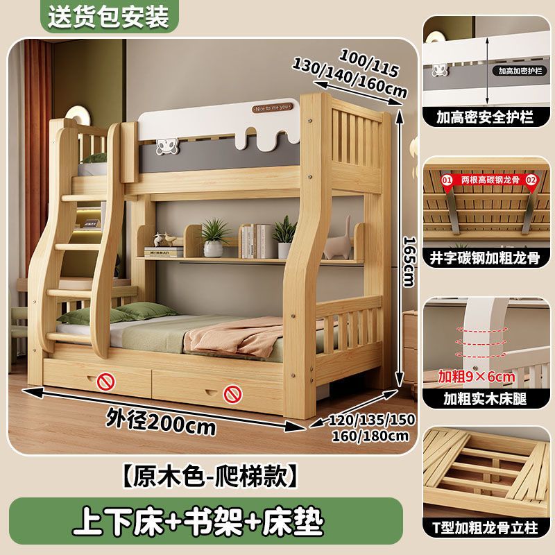 단단한 나무 어머니-아이 침대 두꺼운 이층 침대 2 층 높고 낮은 침대 더블 침대 작은 아파트 상하 침대 나무 침대