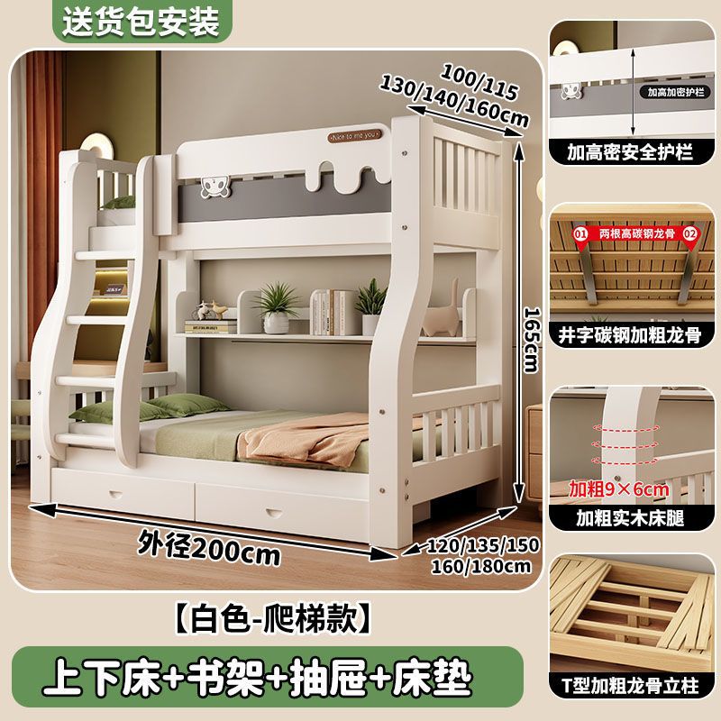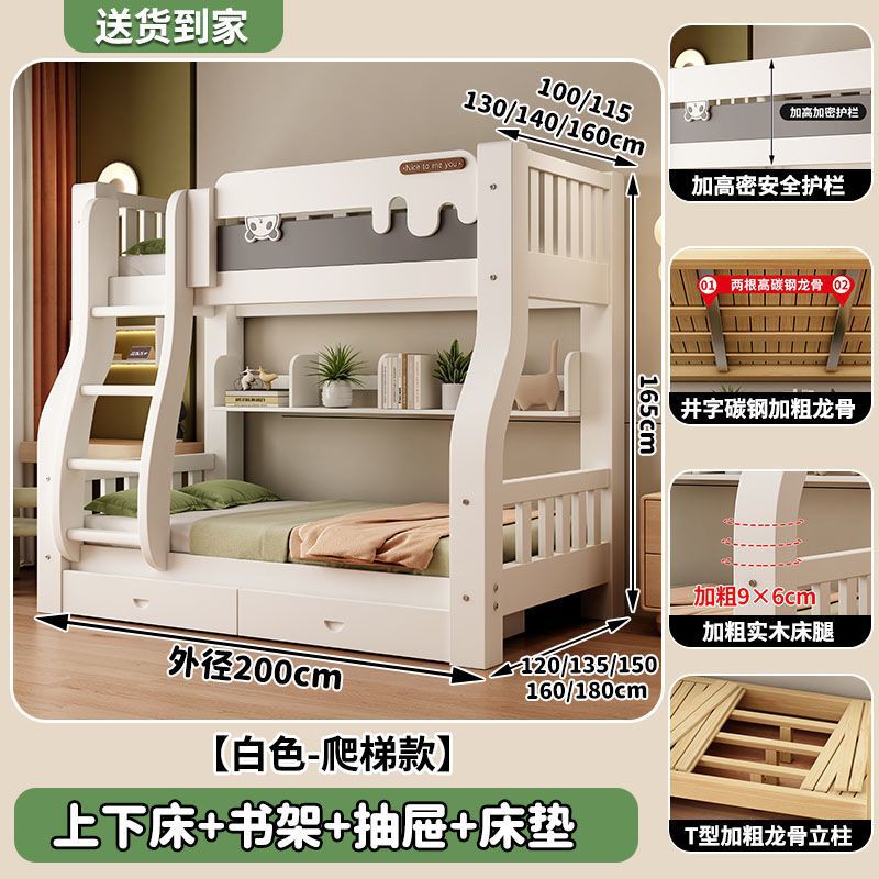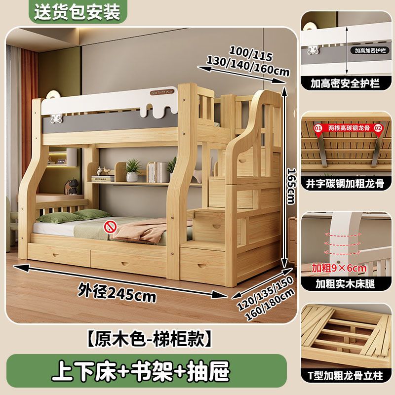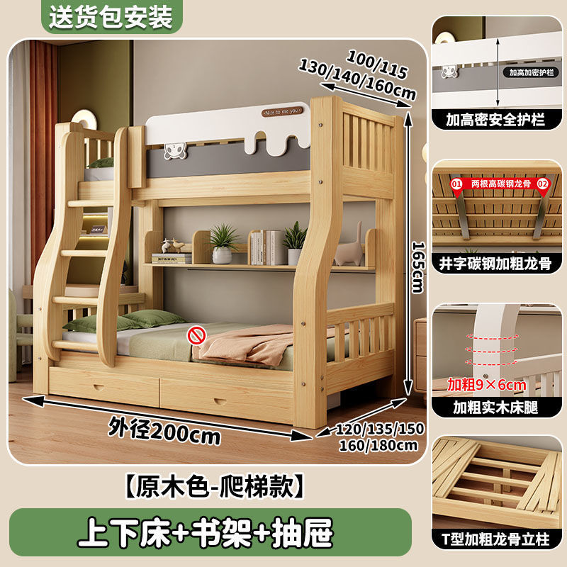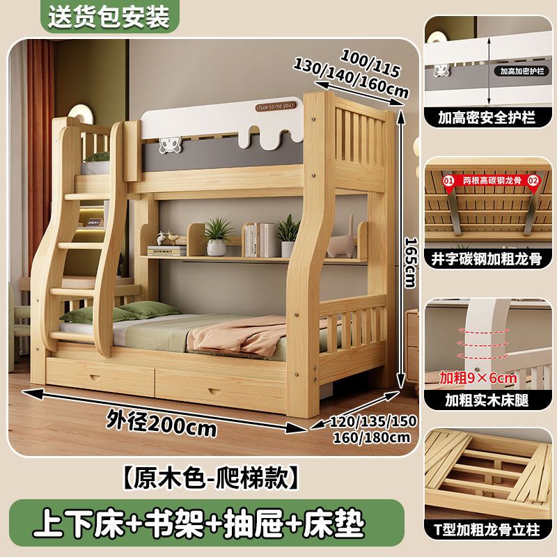 단단한 나무 어머니-아이 침대 두꺼운 이층 침대 2 층 높고 낮은 침대 더블 침대 작은 아파트 상하 침대 나무 침대
