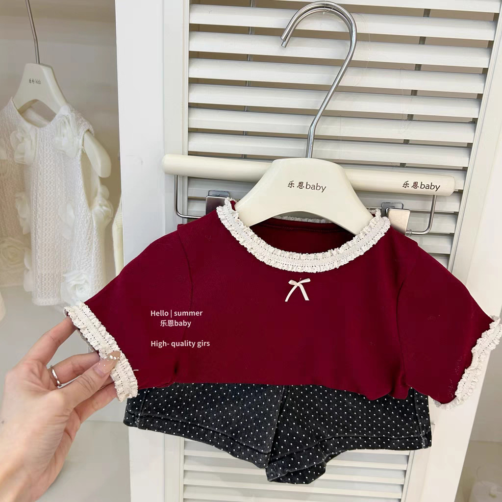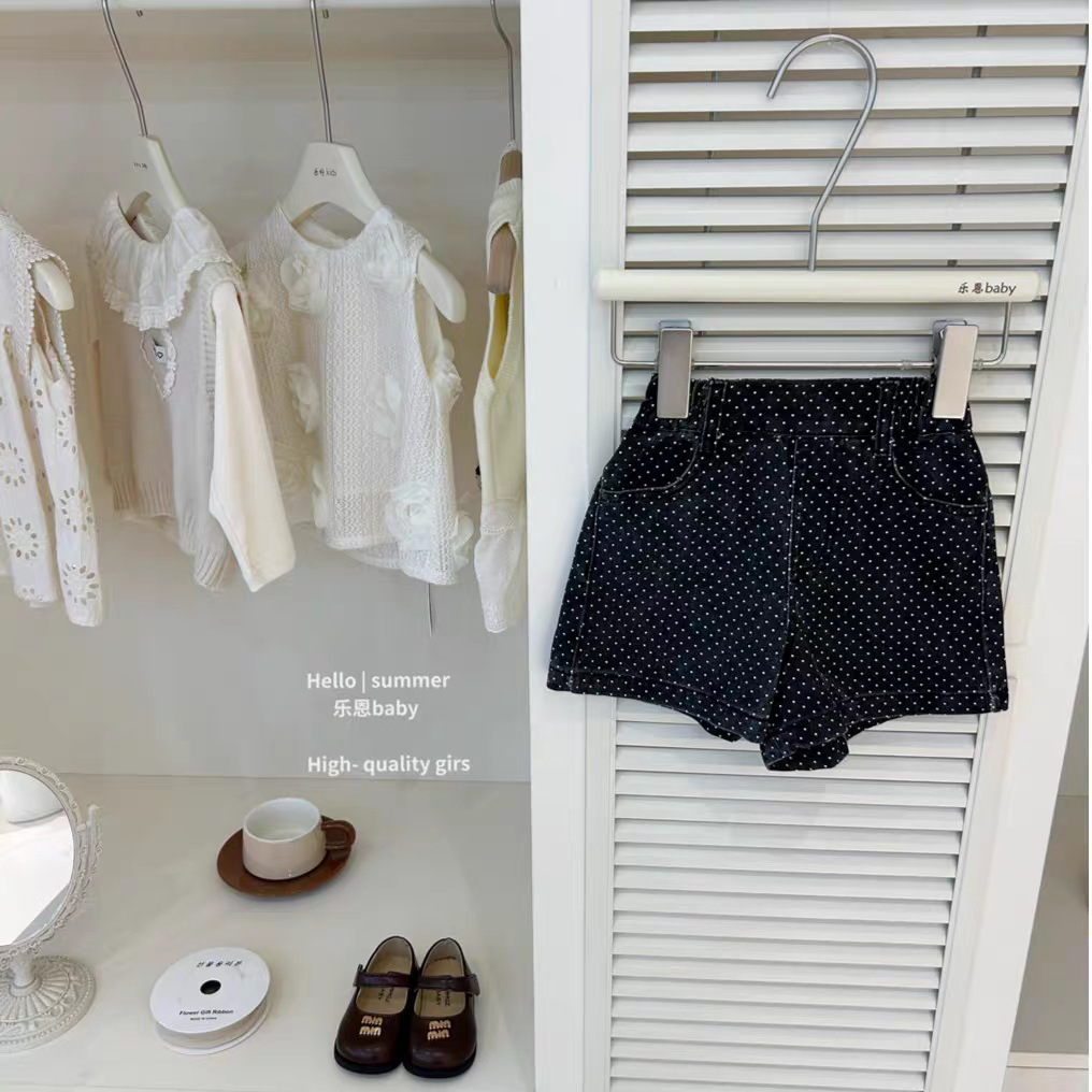 여자 여름 칼라 레이스 반팔 티셔츠 서양식 캐주얼 폴로 도트 데님 반바지 아기 소녀 한국식 투피스 세트스토어 가기