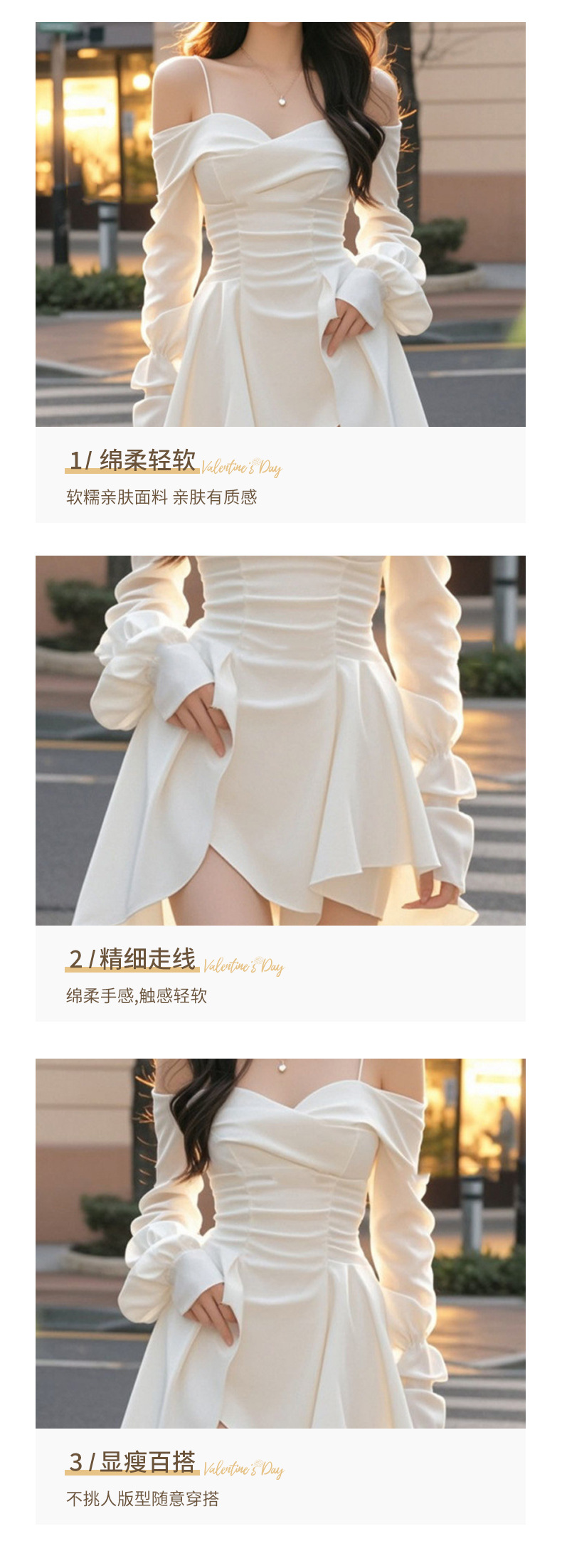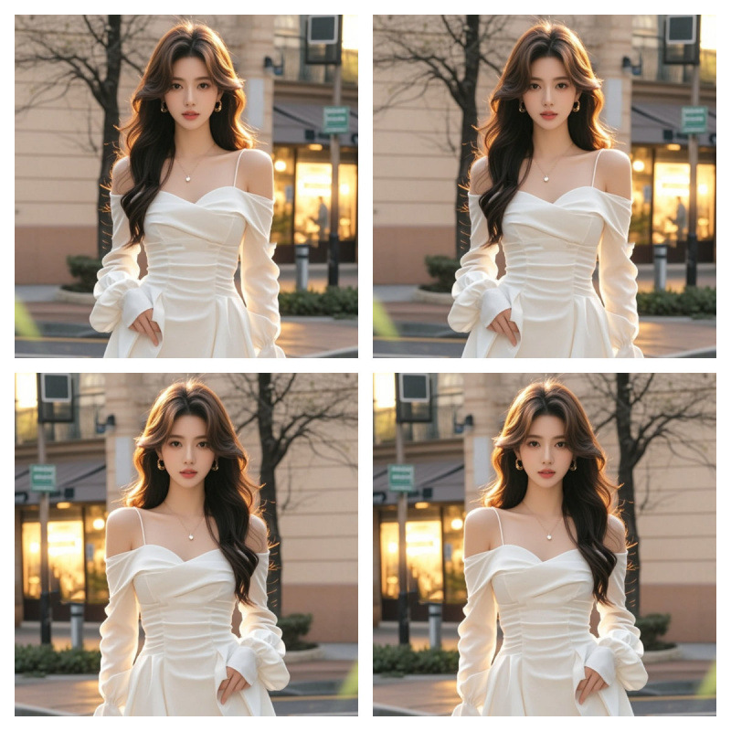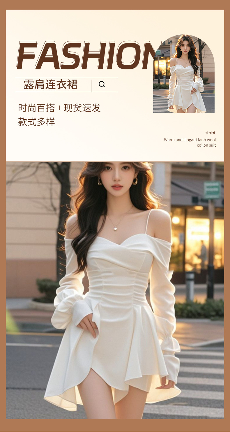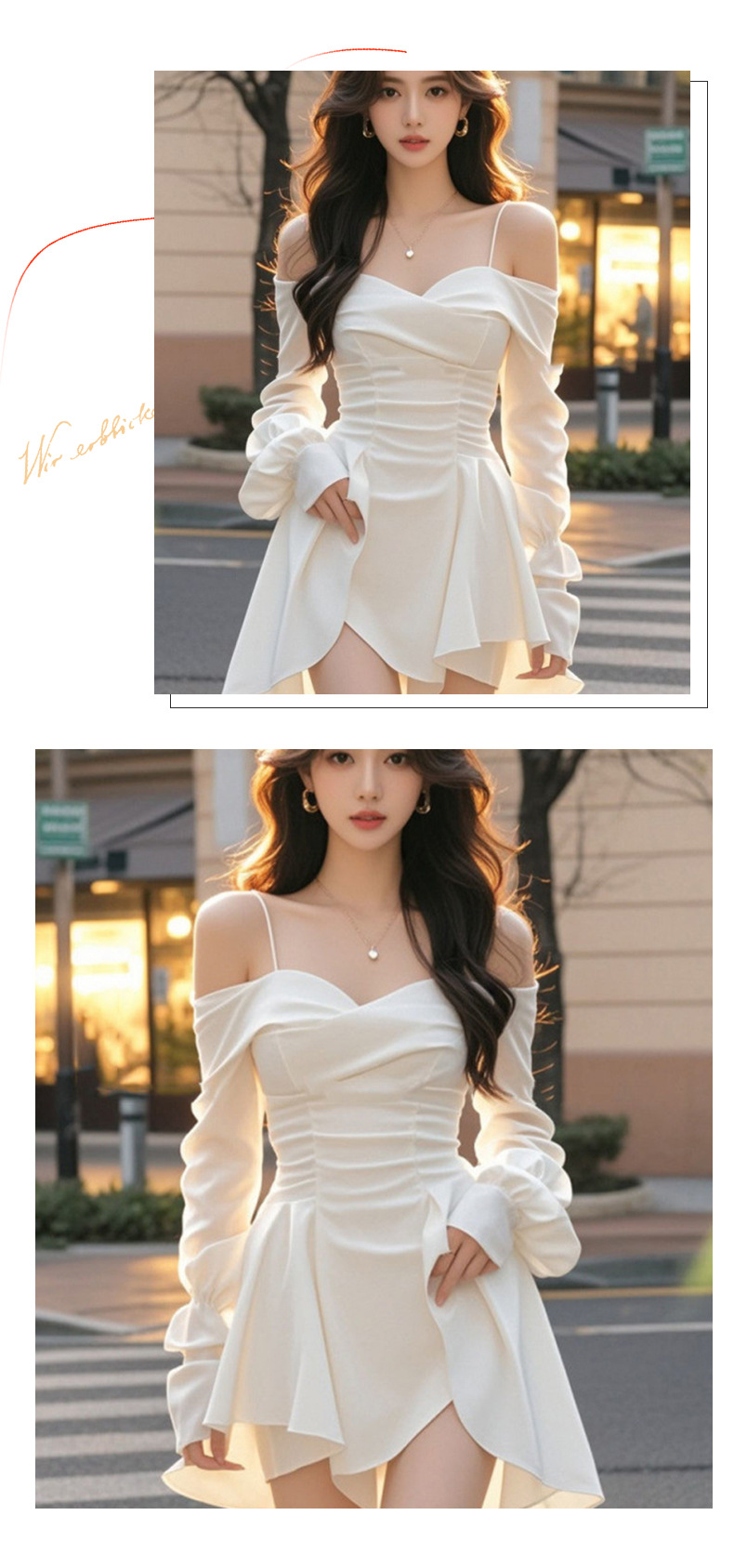 한국 스타일 사교계 스타일 오픈 숄더 칼라 원피스 여성 가을 2025 새로운 우아한 빛 럭셔리 타이트 허리 A 라인 스커트스토어 가기