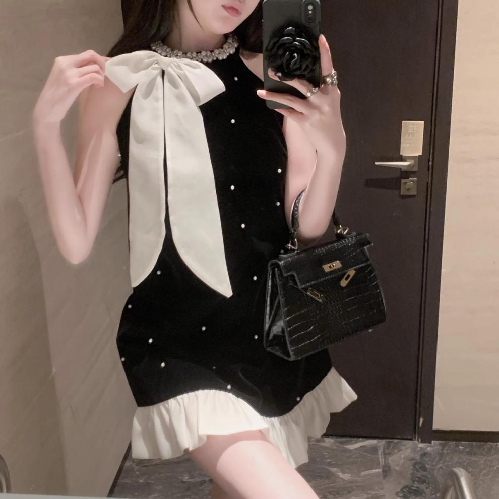 활 목 검은 슬링 원피스 느슨한 슬리밍 소녀의 봄과 여름 A 라인 스커트스토어 가기