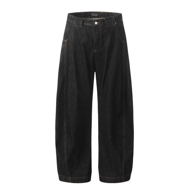 Weila 남성용 느슨한 와이드 레그 바지 하이 스트리트 트렌디 팬츠 스플릿 스티칭 캐주얼 토레 팬츠 Machete Jeans