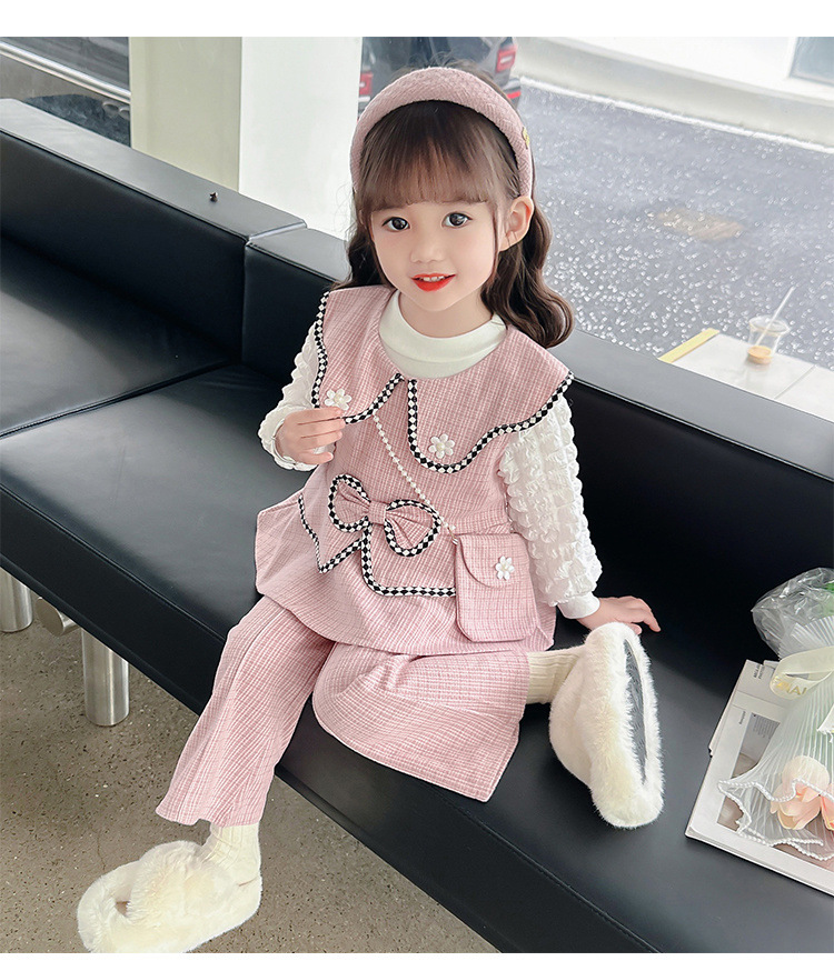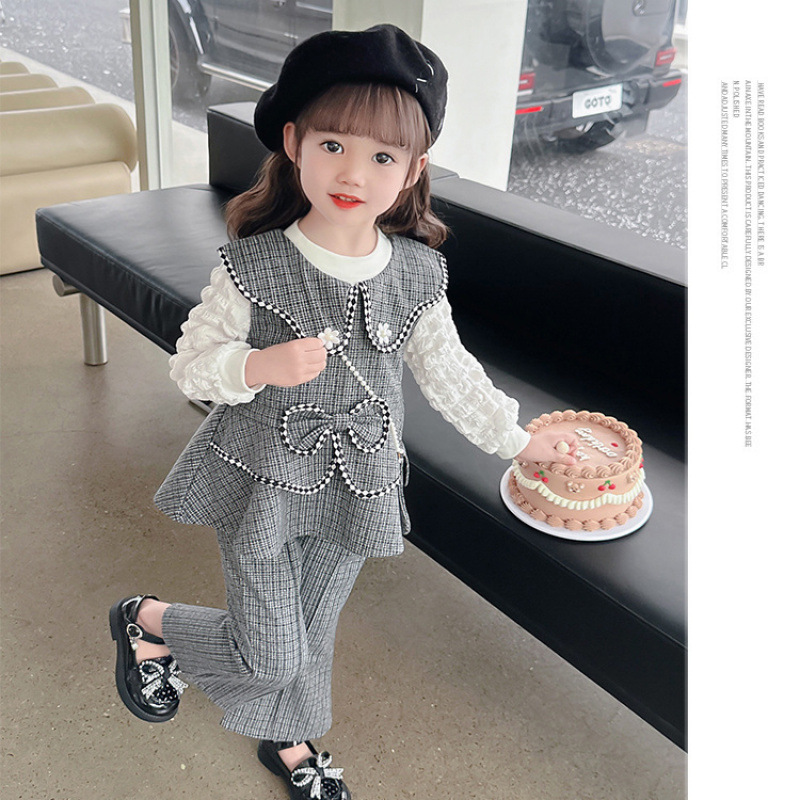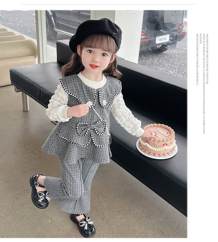 [패션 헴] 여자 가을 2025 새로운 세트 소녀 작은 향기로운 스타일 캐주얼 긴 소매 아기 서양식