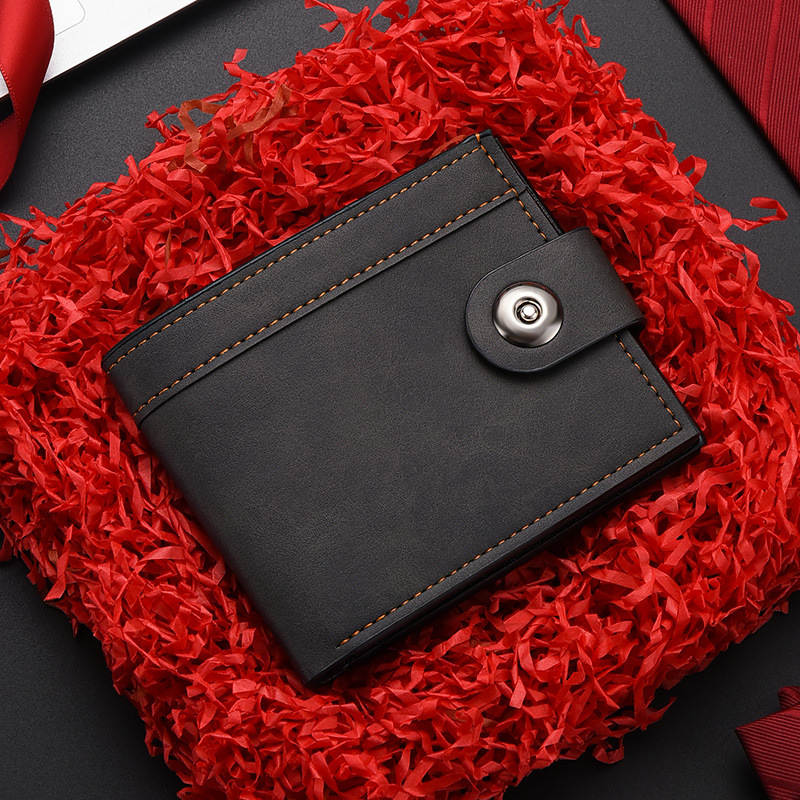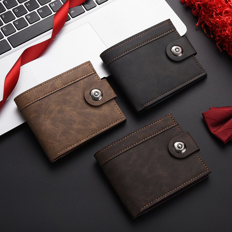 새로운 지갑 남자의 짧은 지갑 버튼 높은 가치 가죽 비 로고 멀티 카드 동전 지갑 남자 카드 홀더스토어 가기