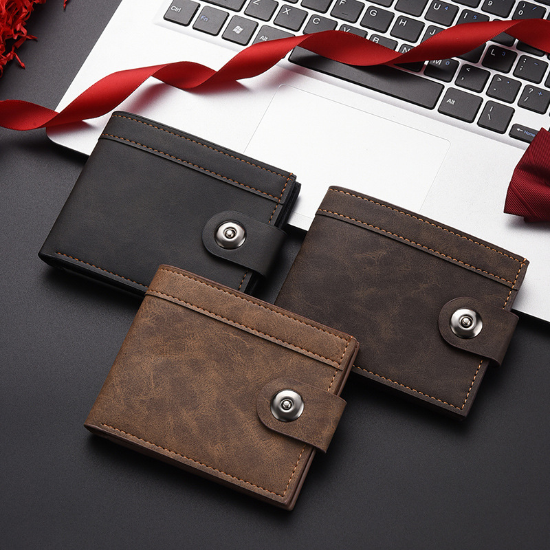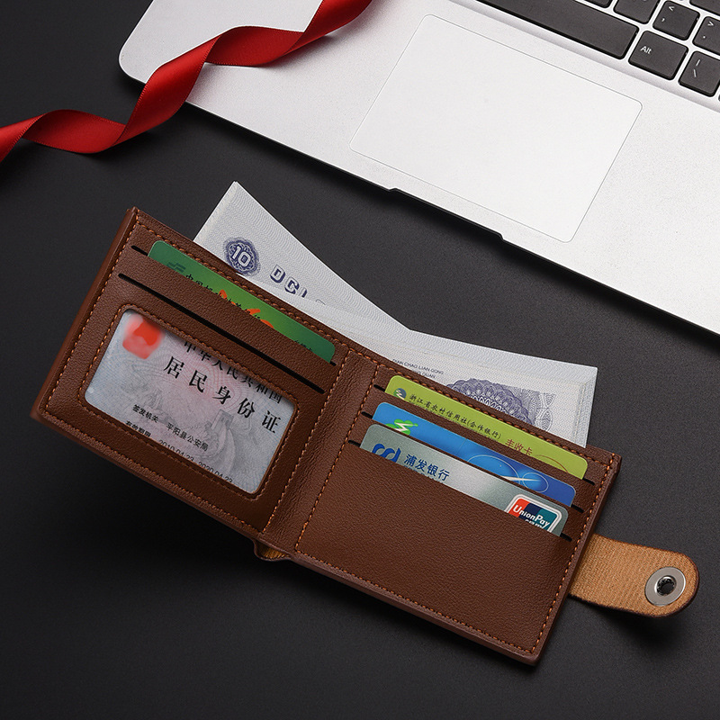 새로운 지갑 남자의 짧은 지갑 버튼 높은 가치 가죽 비 로고 멀티 카드 동전 지갑 남자 카드 홀더