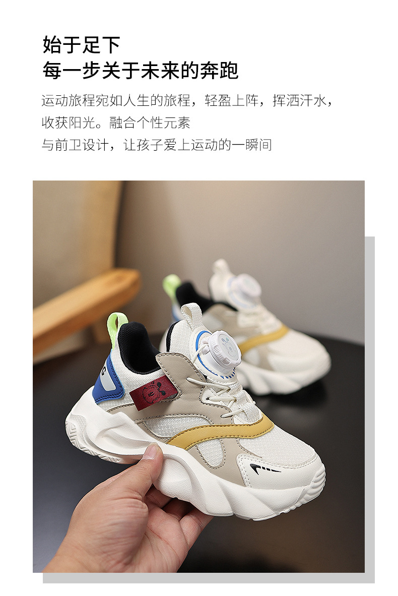 소년 소녀를위한 Babu Bean 어린이 신발 2025 봄 새로운 유행 올 매치 3-14 세 통기성 미끄럼 방지 회전 버튼 신발