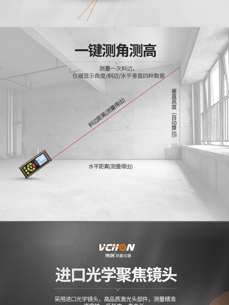 Weichuang 레이저 범위 찾기 고정밀 휴대용 적외선 측정 통치자 거리 측정 방 전자 통치자스토어 가기