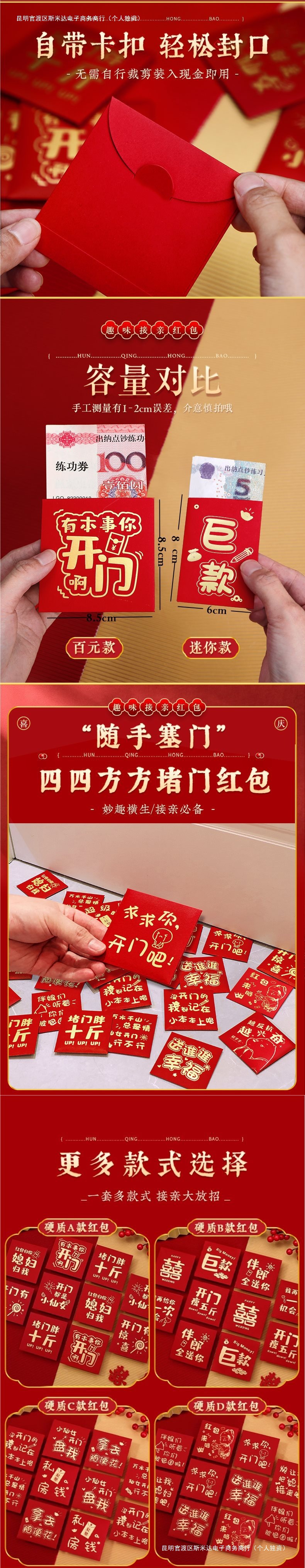 • 창의적인 픽업 빨간 봉투로 문을 막으세요(반으로 접어서 5/10/100을 담을 수 있음)