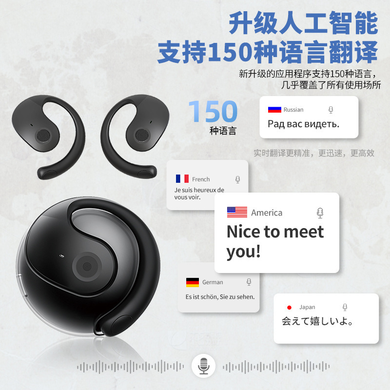 새로운 작은 코코넛 볼 AI 지능형 멀티 컨트리 번역 블루투스 헤드셋 귀 매달려 긴 내구성 OWS 무선 헤드셋 범용스토어 가기