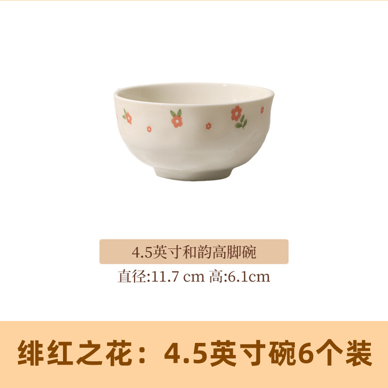 • 크림슨 플라워 4.5인치 잉 그릇 6팩