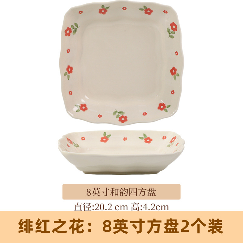 • 크림슨 플라워 8inch 사각 접시 2팩