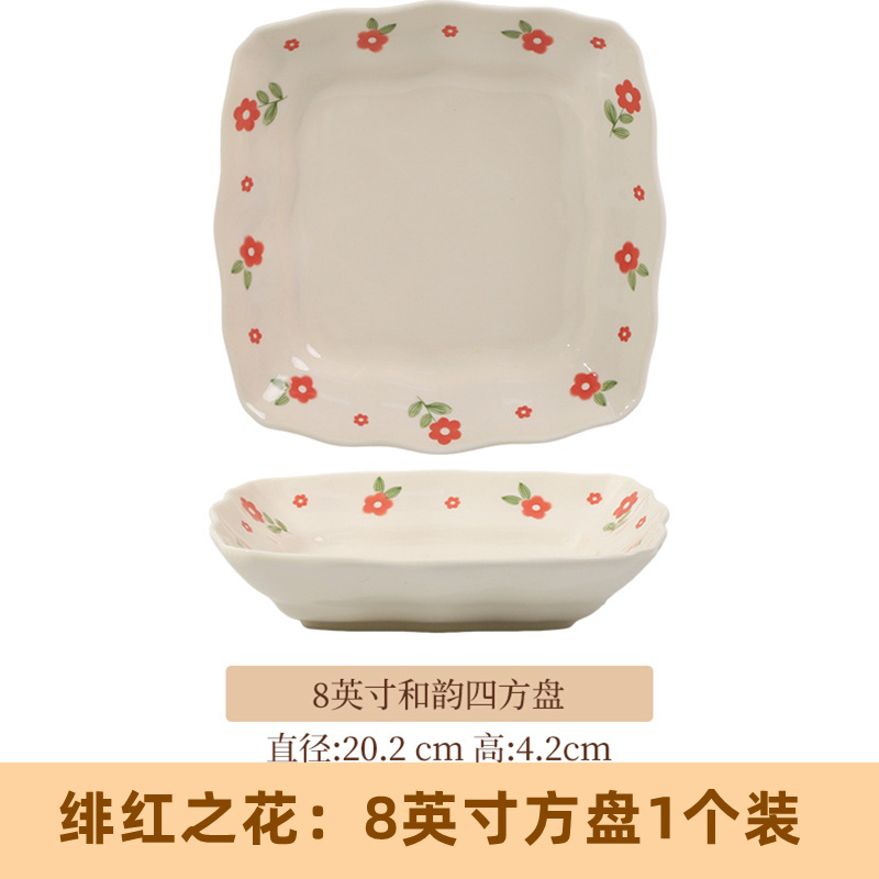 • 크림슨 플라워 8inch 사각 접시 1팩