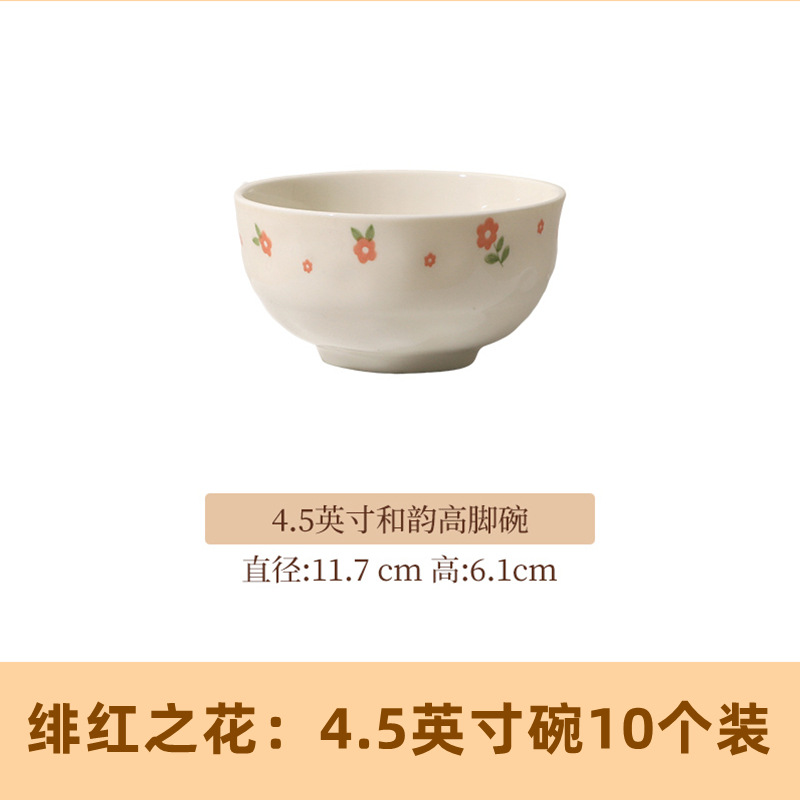• 크림슨 플라워 4.5인치 영국 그릇 10개