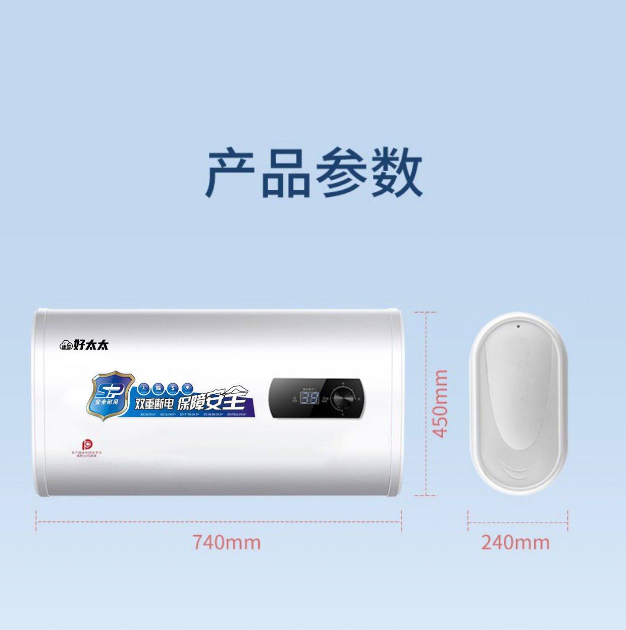 • 80리터 플랫 배럴 디지털 디스플레이 + 물 차단 + 높은 구성