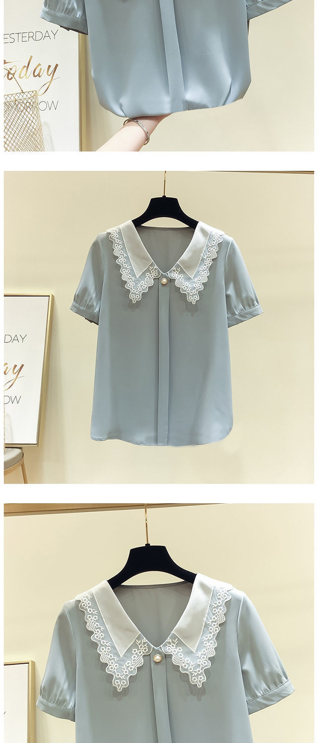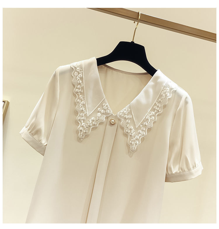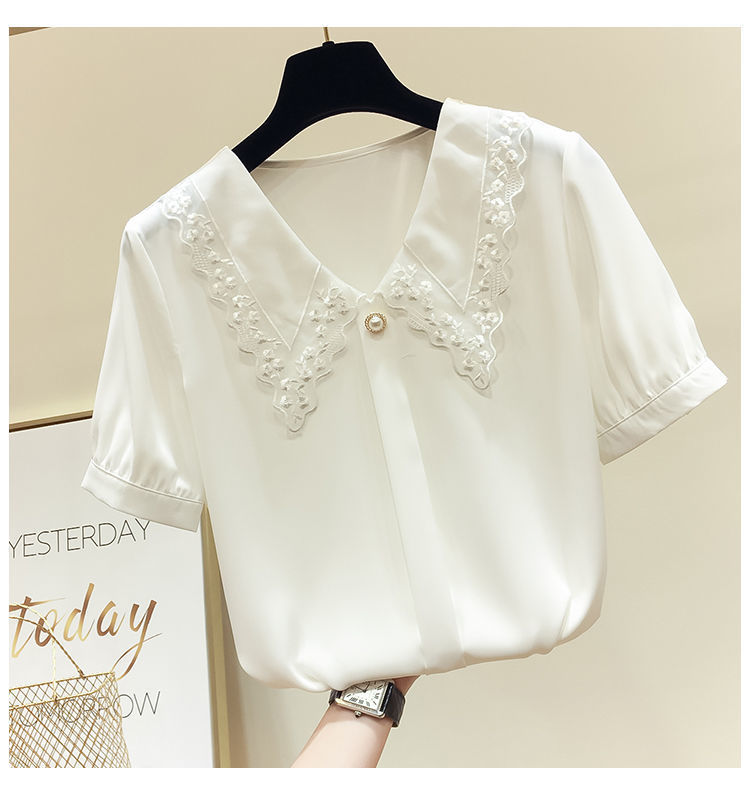 시폰 셔츠 여성용 반팔 2025 여름 신작 한국식 하이 엔드 루즈 슬리밍 인형 칼라 스위트 스타일 트렌디 스몰 셔츠스토어 가기