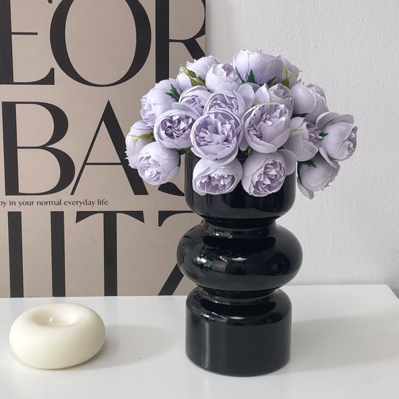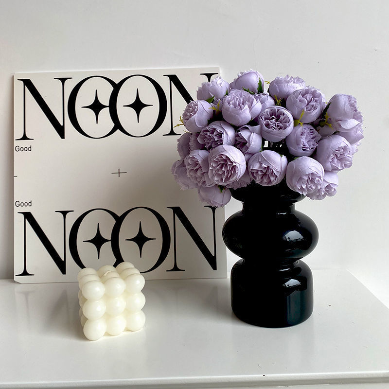 • 블랙 라이트 럭셔리 중세 꽃병 + 보라색 꽃다발 1개