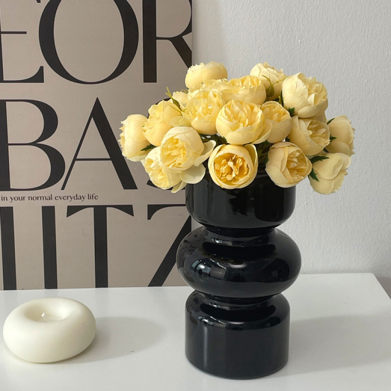 • 블랙 라이트 럭셔리 중세 꽃병 + 노란색 꽃 2송이