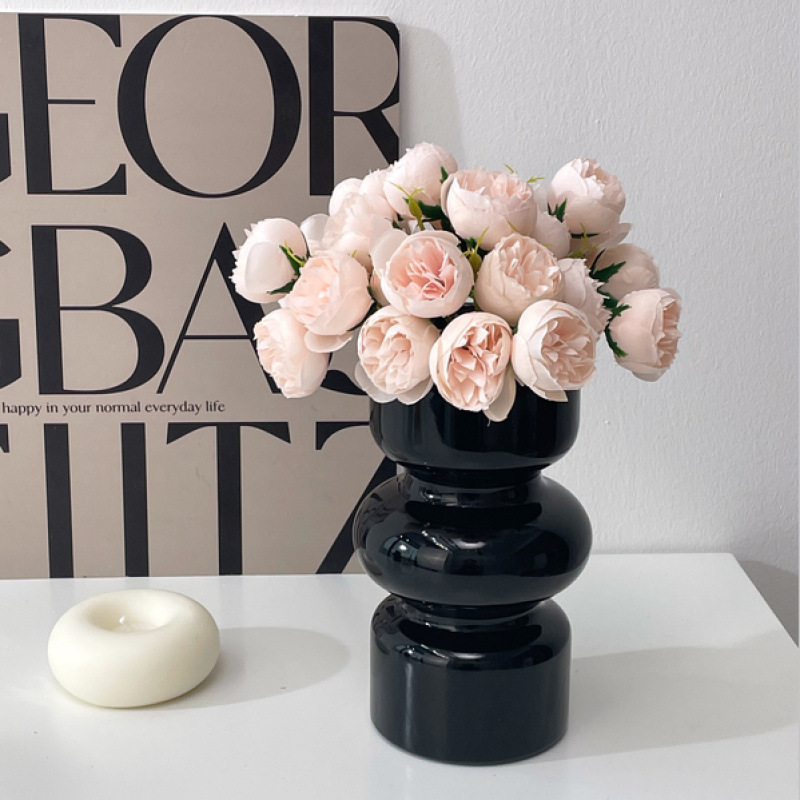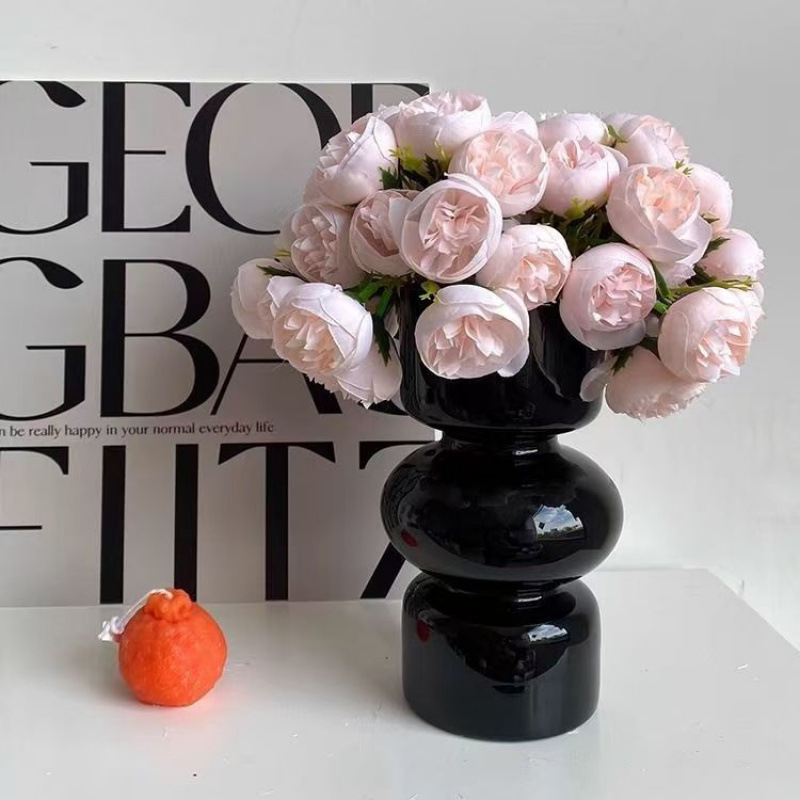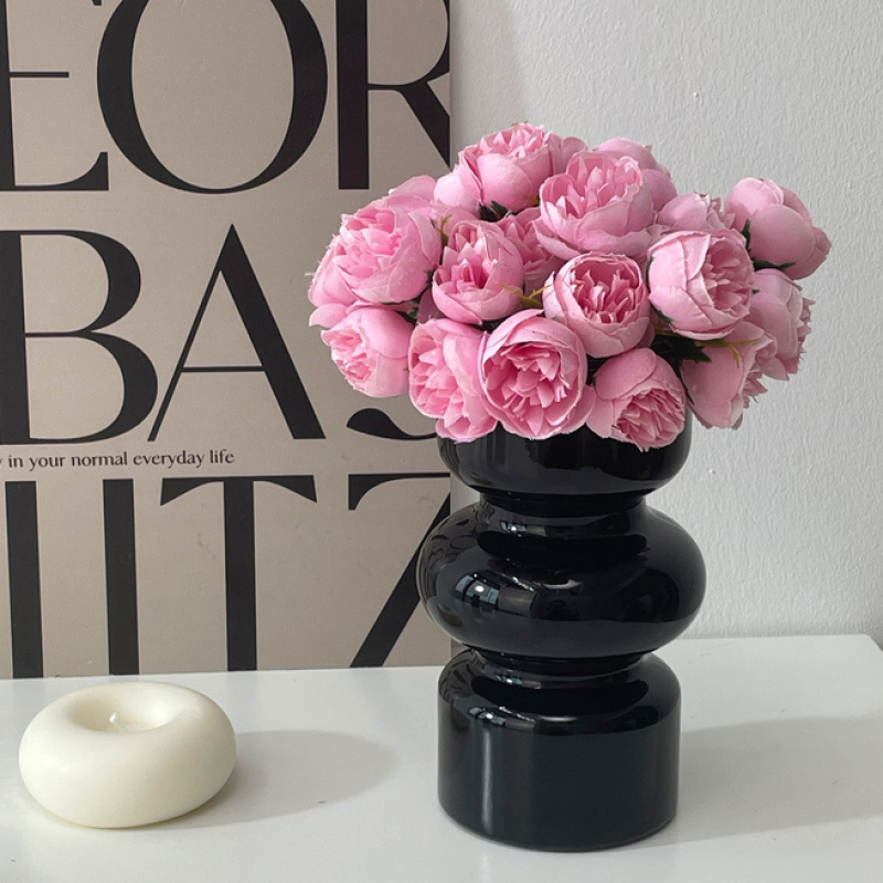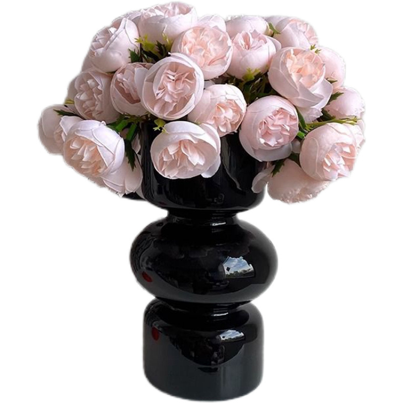 • 블랙 라이트 럭셔리 중세 꽃병 + 핑크 꽃다발 1개