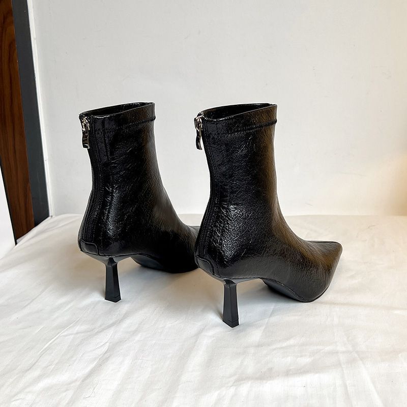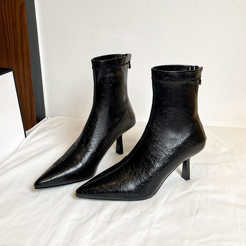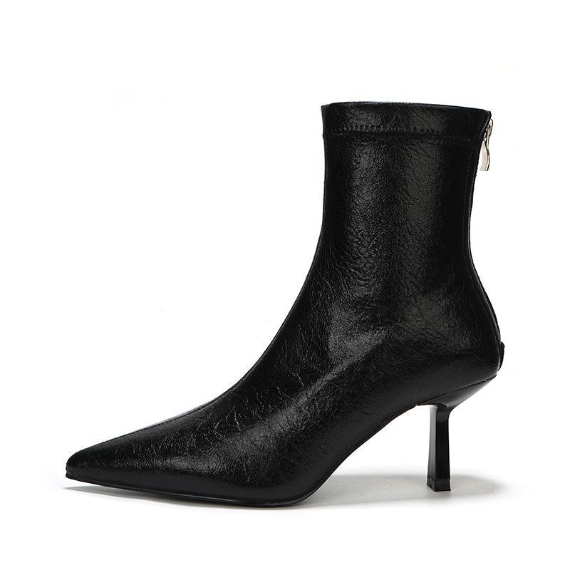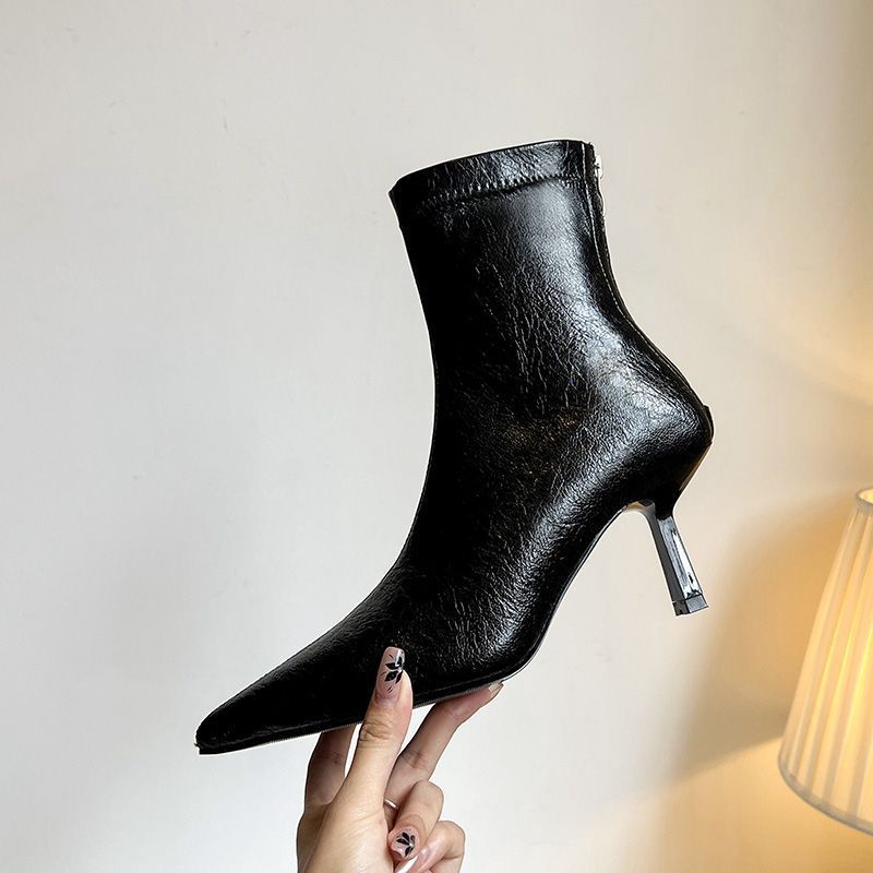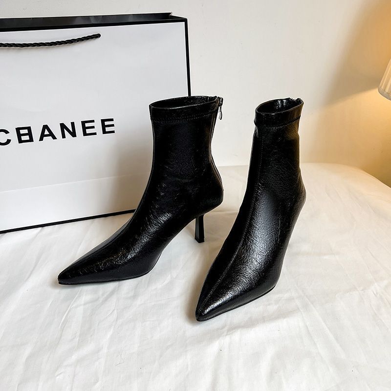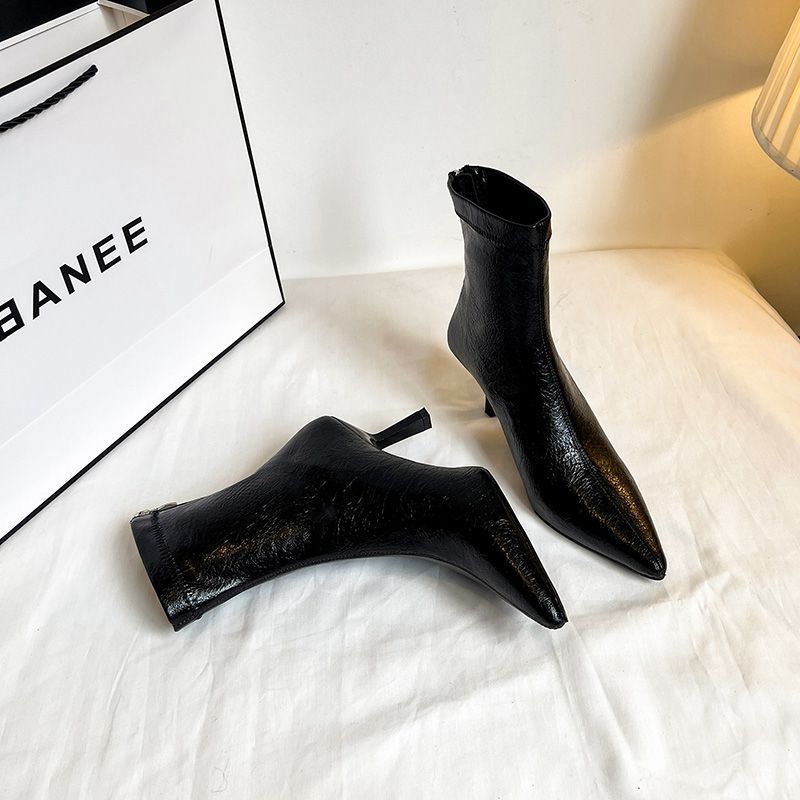 뾰족한 발목 부츠 여성 2025 겨울 새 여성용 부츠 얇은 부츠 패션 하이힐 부츠 여성 유럽과 미국의 얇은 발 뒤꿈치 발목 부츠스토어 가기