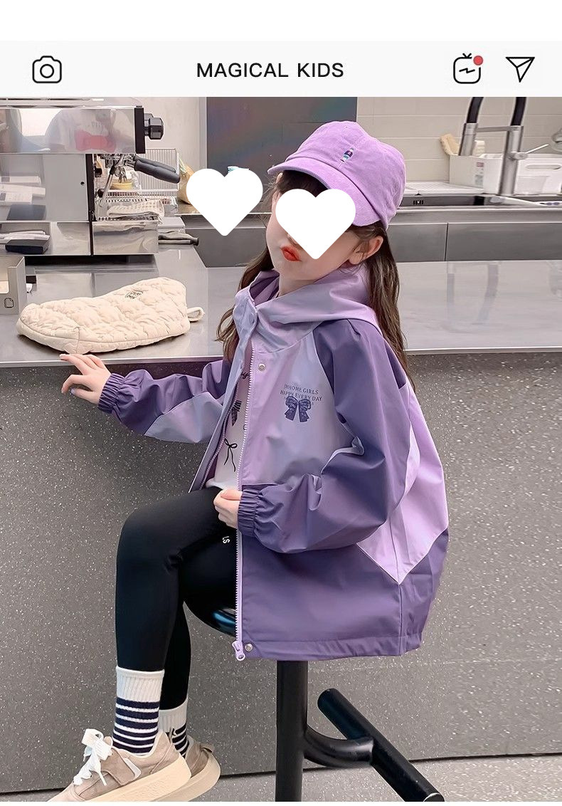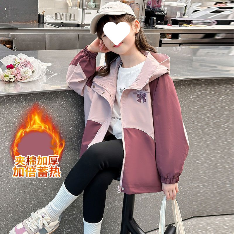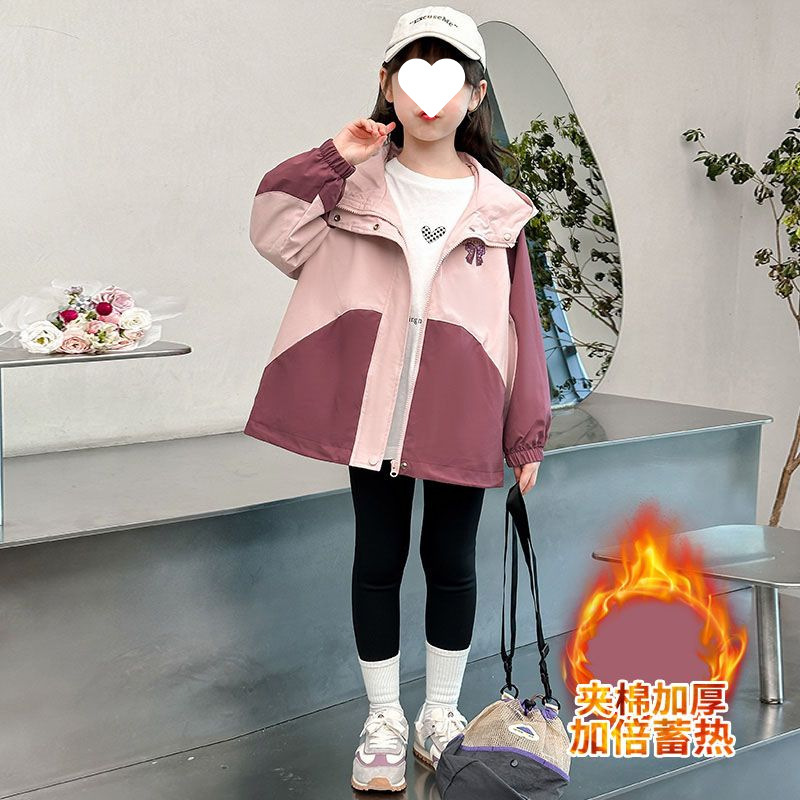 소녀의 충전 옷 코트 봄과 가을 2025 새로운 가을 소녀의 후드 탑 어린이 가을 어린이 옷스토어 가기