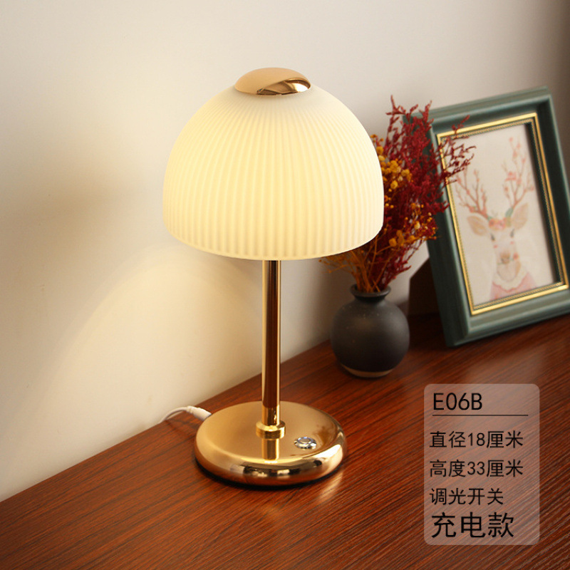 유럽 스타일 침실 유리 테이블 램프 충전 터치 디밍 웨딩 룸 따뜻한 로맨틱 간단한 현대 창조적 인 침실 램프