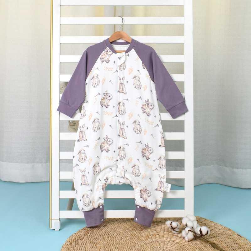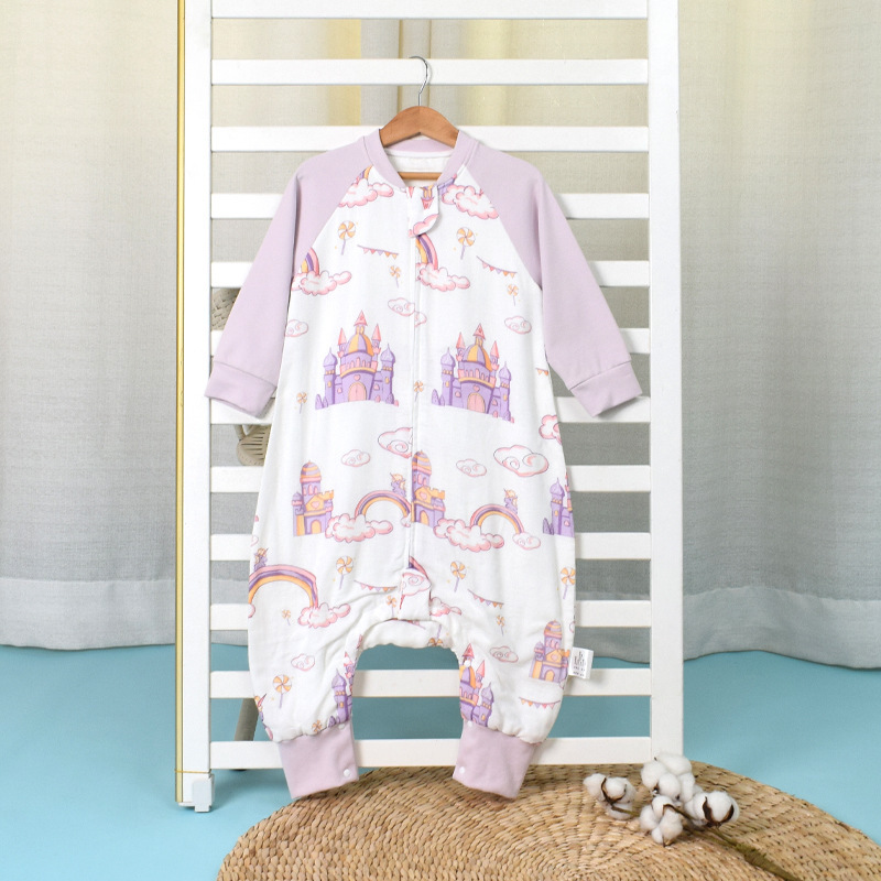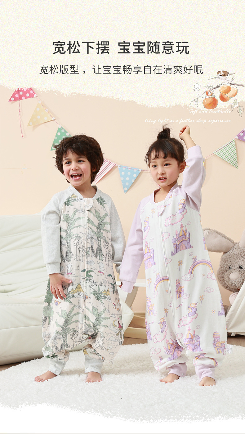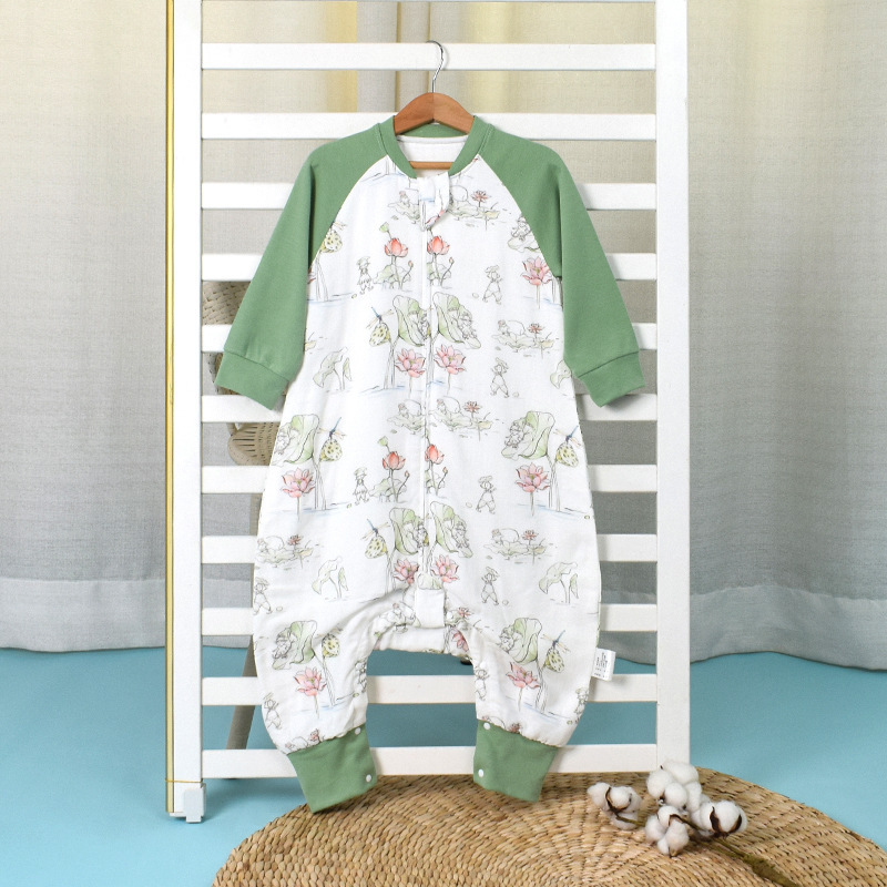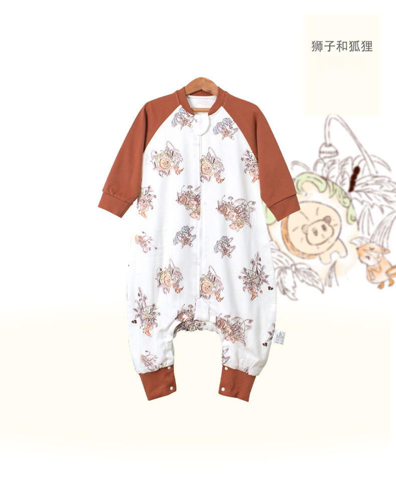4 ~ 6 층의 대나무면 거즈 어린이 침낭 만화 인쇄 아기 잠옷 긴 소매 다리 아기 점프 수트 도매
