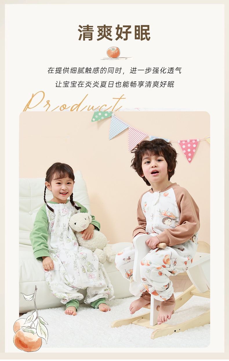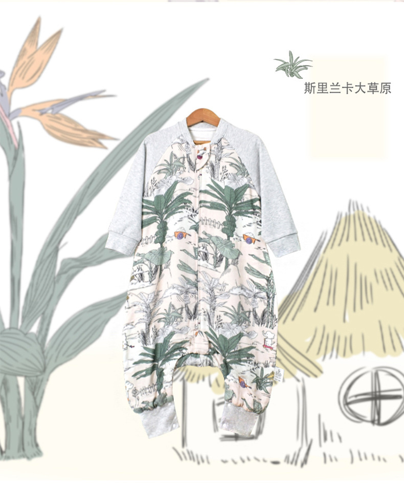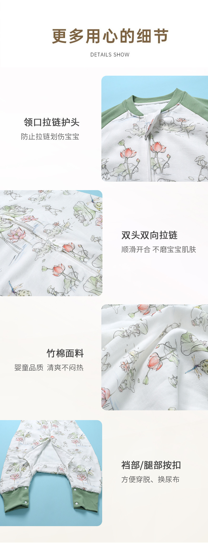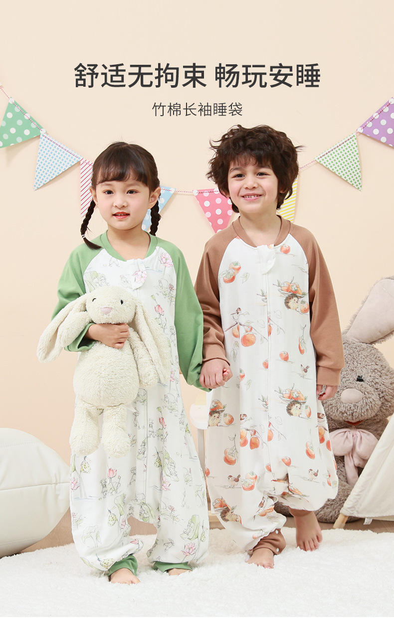 4 ~ 6 층의 대나무면 거즈 어린이 침낭 만화 인쇄 아기 잠옷 긴 소매 다리 아기 점프 수트 도매