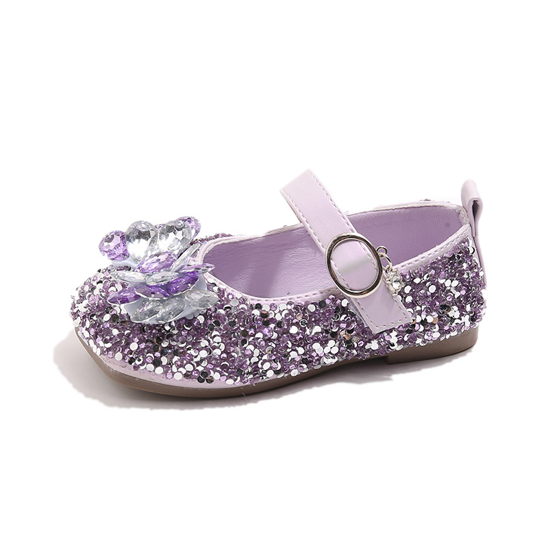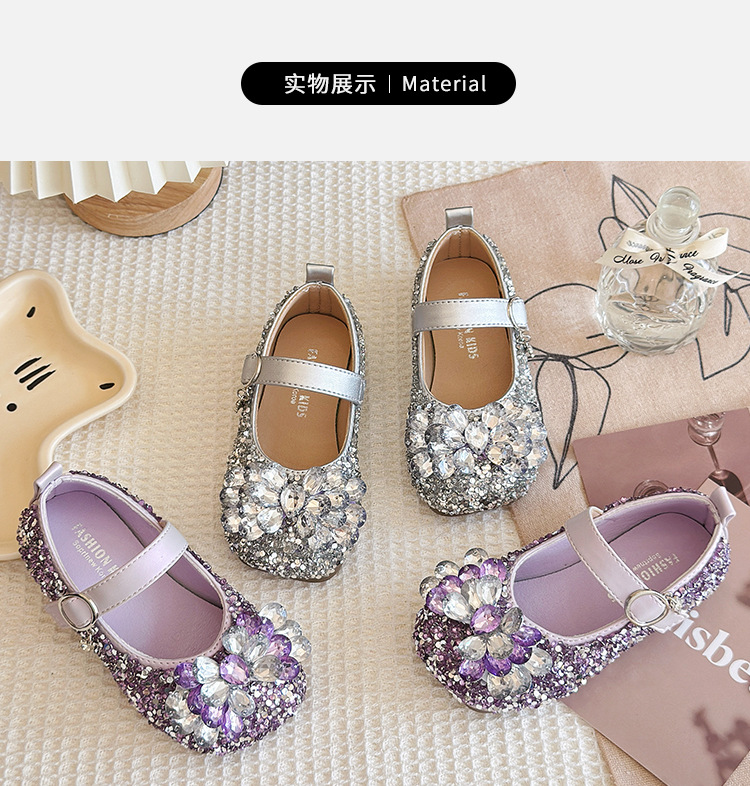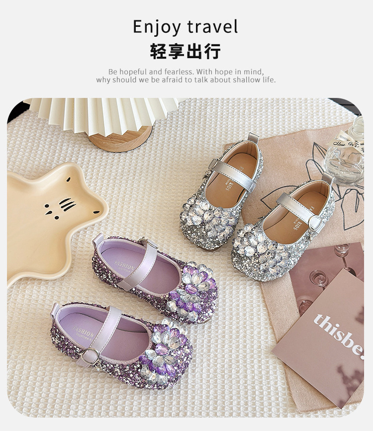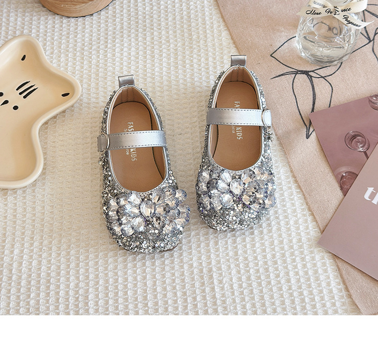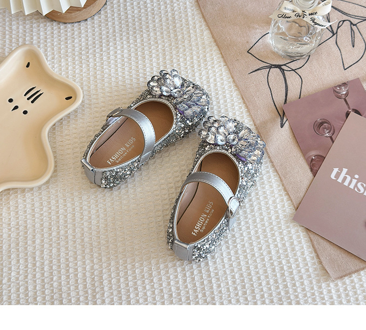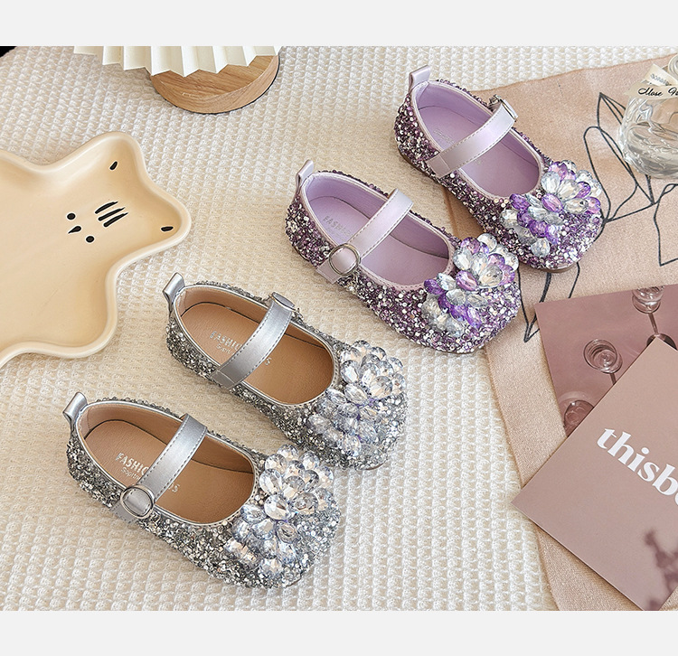 2025 봄 가을 새 샌들 소녀 한국 어린이 신발 다이아몬드 꽃 패션 댄스 공주 신발 도매