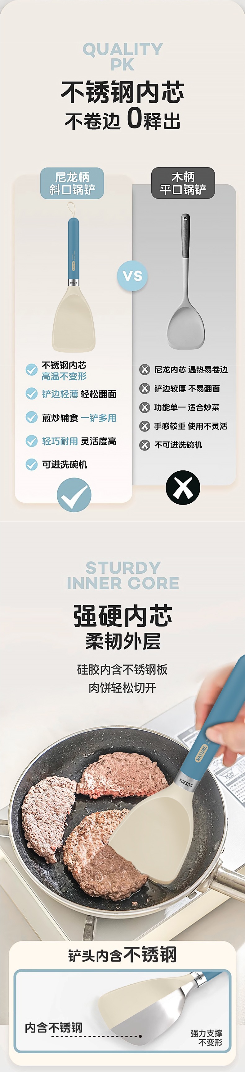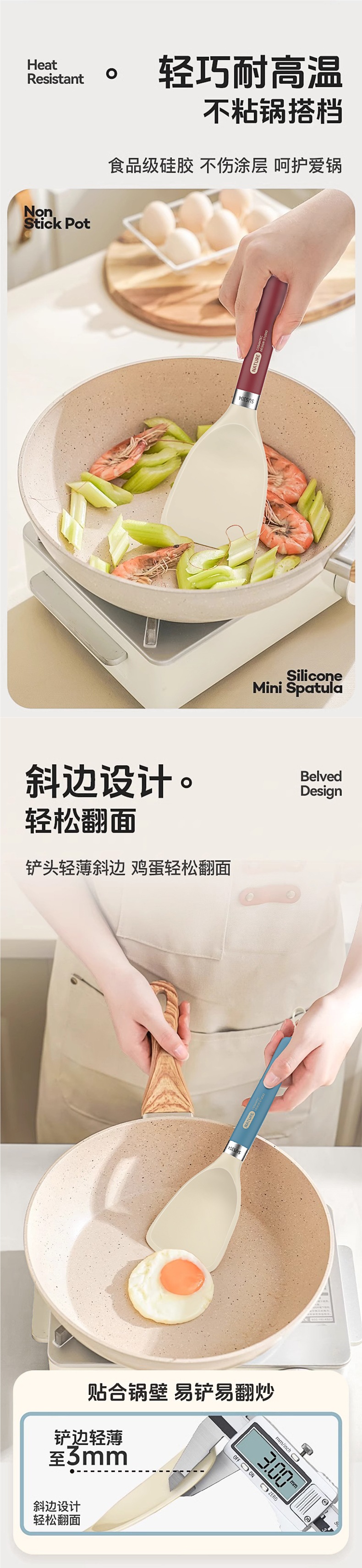 실리콘 삽 식품 등급 스몰 사이즈 프라이팬 미니 볶음 주걱 비 스틱 팬 고온 내성 아침 식사 식품 보완 삽스토어 가기
