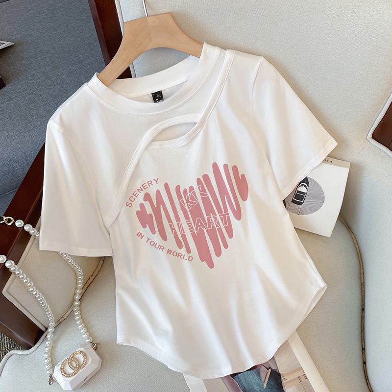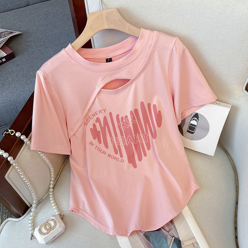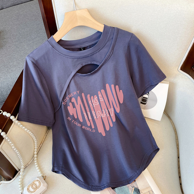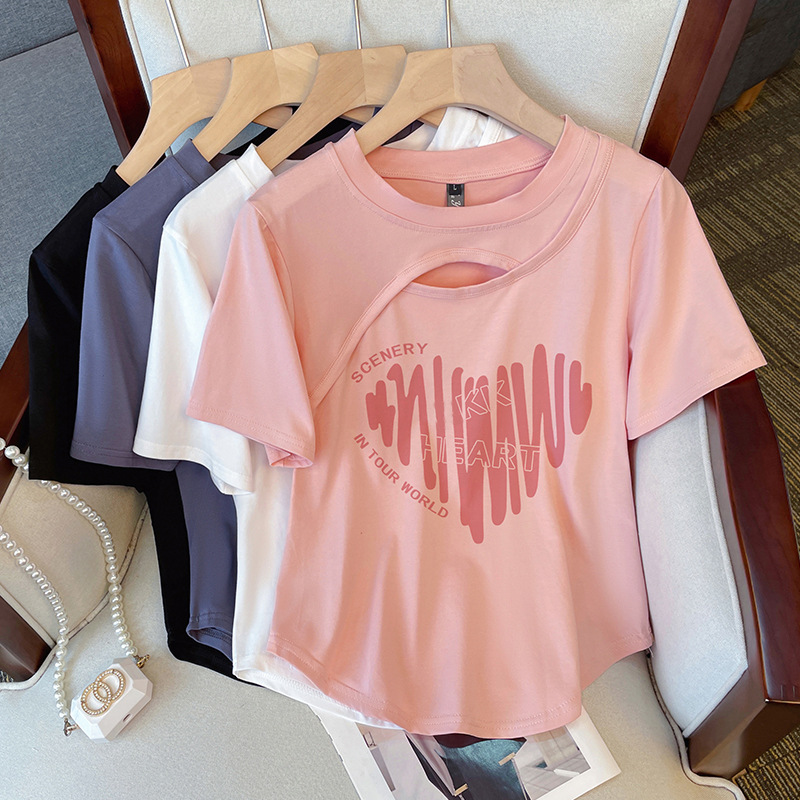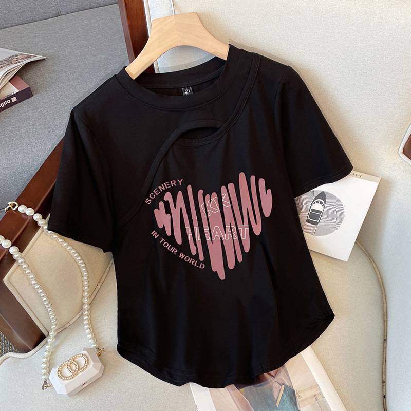 플러스 사이즈 폴로 칼라 어깨 반팔 티셔츠 여성용 여름 새 통통녀 슬림 배꼽 덮음 불규칙한 쇼트 탑스토어 가기
