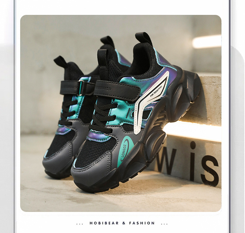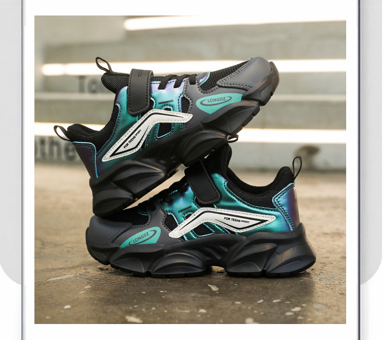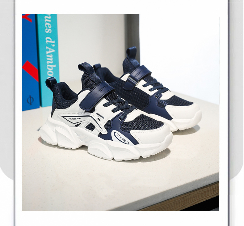 통기성 메쉬 남성 신발 2025 봄과 가을 새로운 중대형 어린이 달리기 신발 소프트 하단 미끄럼 방지 벨크로 운동화스토어 가기