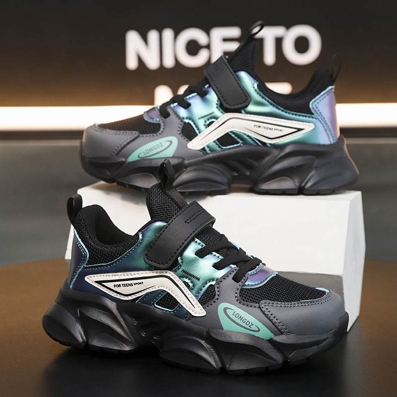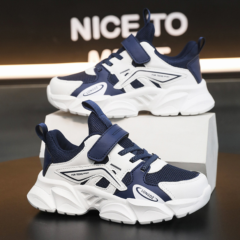 통기성 메쉬 남성 신발 2025 봄과 가을 새로운 중대형 어린이 달리기 신발 소프트 하단 미끄럼 방지 벨크로 운동화