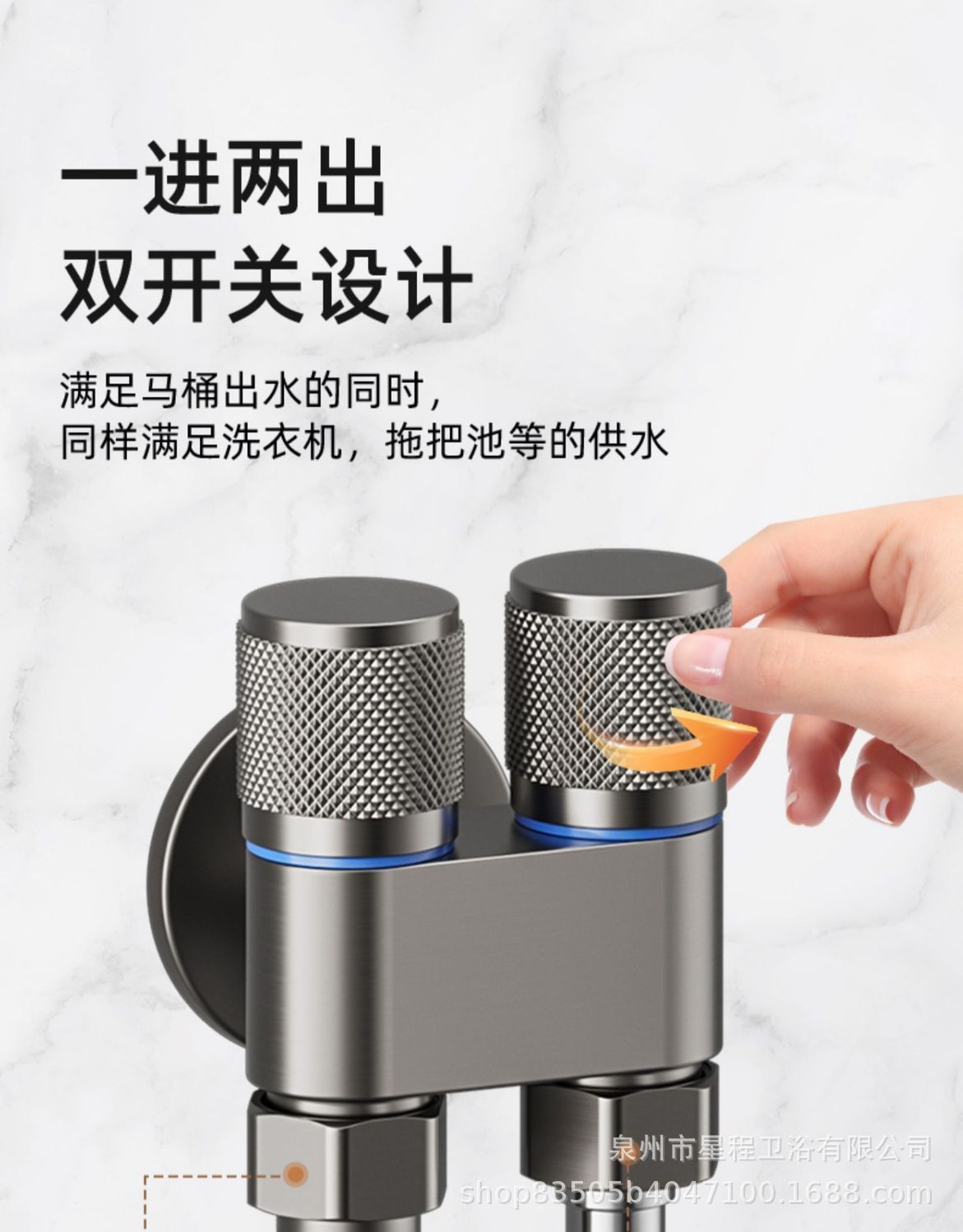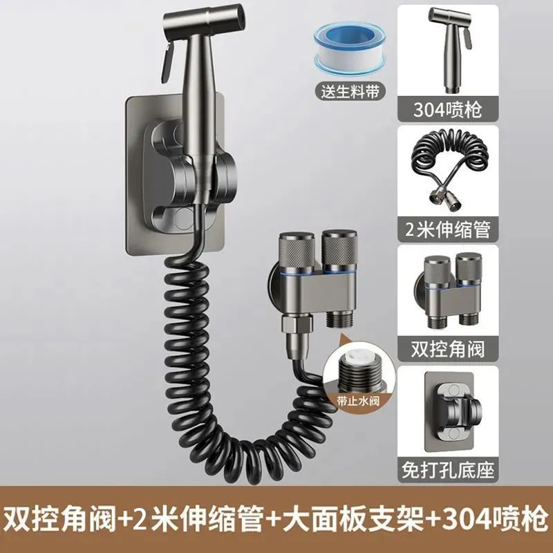 스테인리스 스틸 화장실 액세서리, 1입구 2출구 앵글 밸브, 발코니 화장실 세척 스프레이 건 세트, 도매 분수 밸브