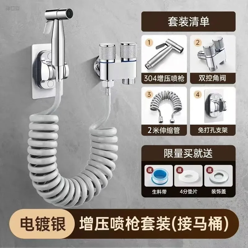 스테인리스 스틸 화장실 액세서리, 1입구 2출구 앵글 밸브, 발코니 화장실 세척 스프레이 건 세트, 도매 분수 밸브스토어 가기