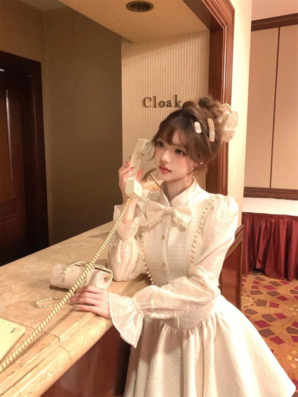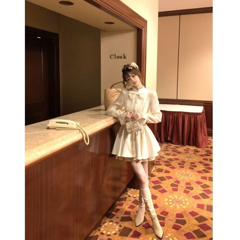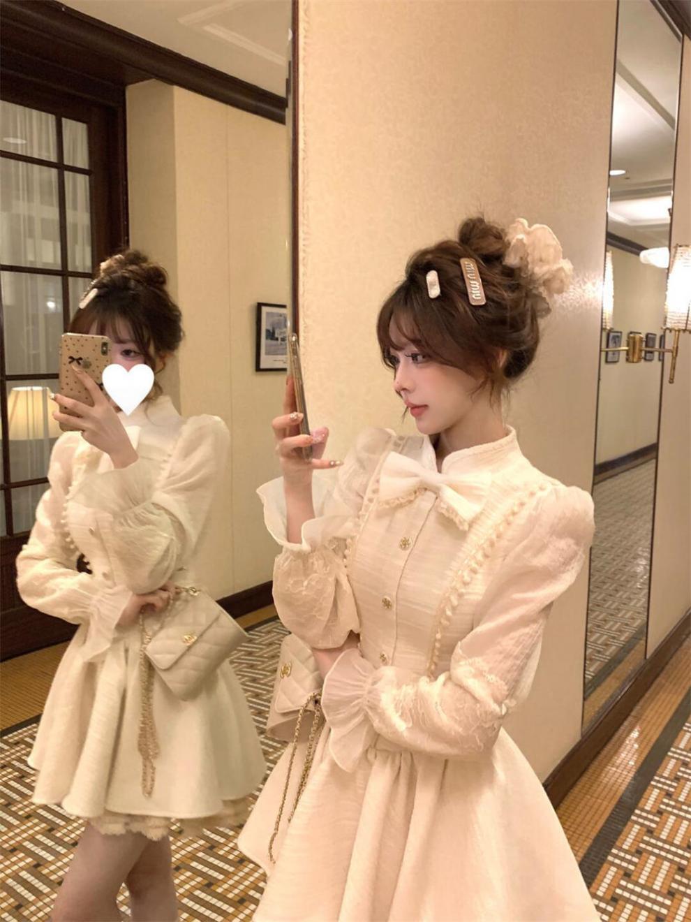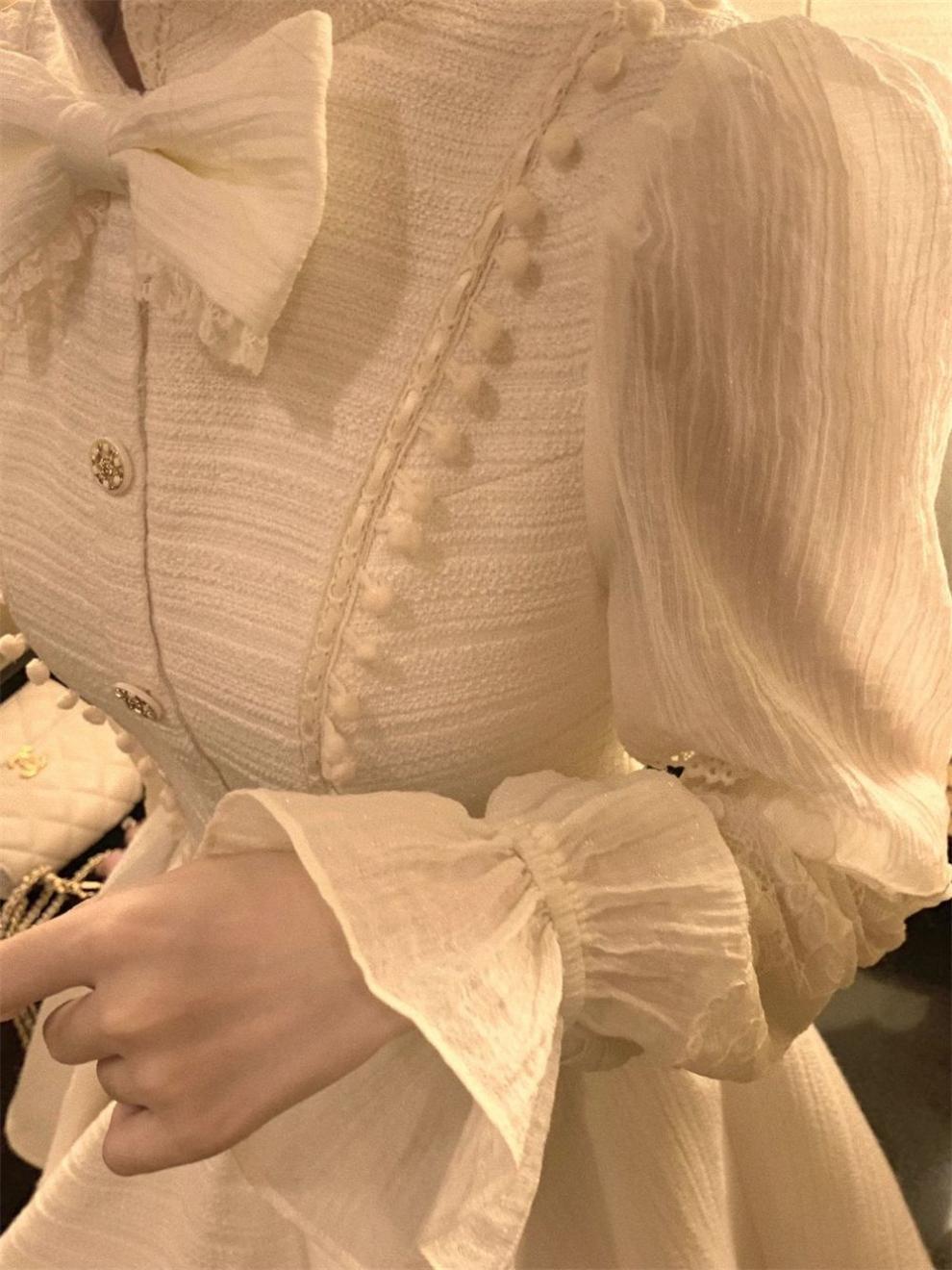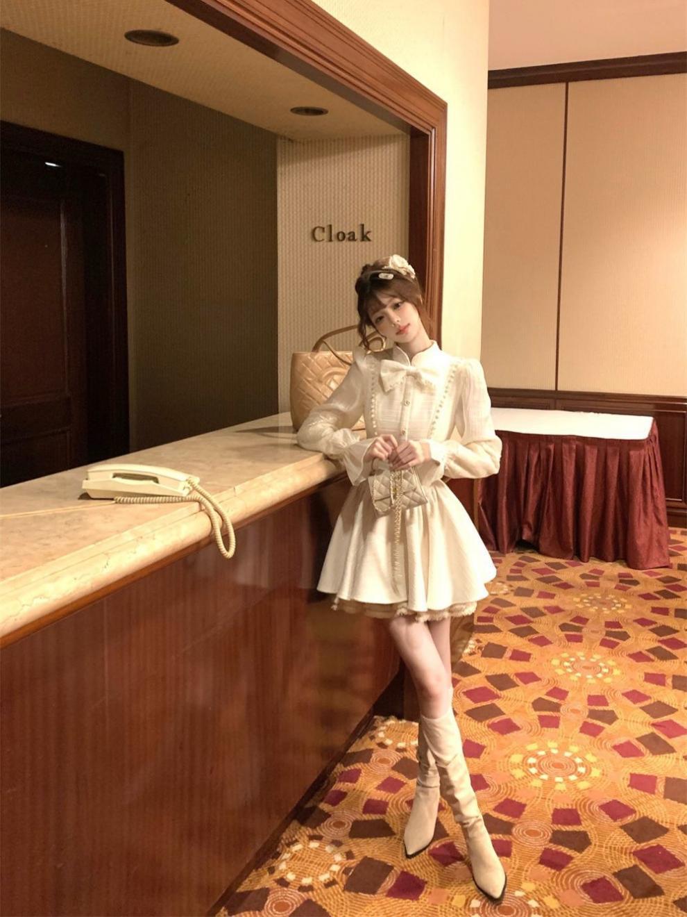 부유 한 가족 연예인 레이디 샤넬 스타일 긴 소매 원피스 가을과 겨울 새로운 서양식 타이트 허리 슬리밍 퍼피 공주 원피스스토어 가기