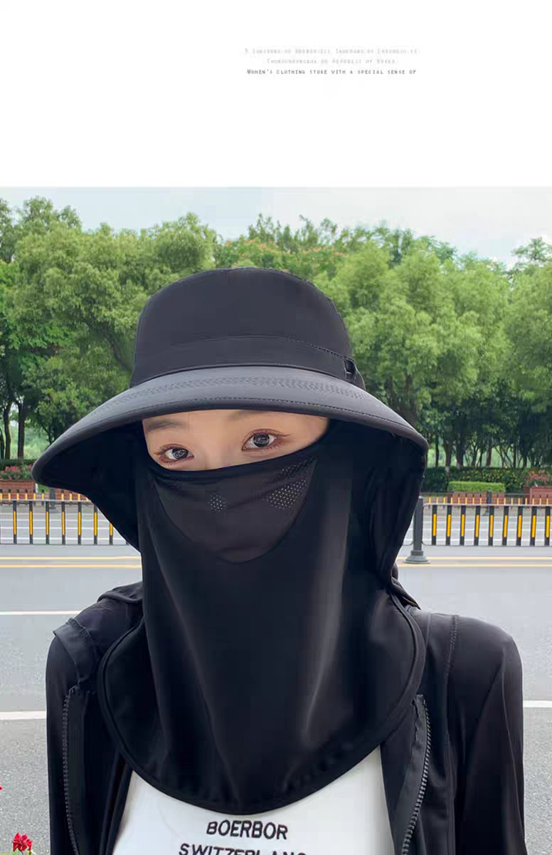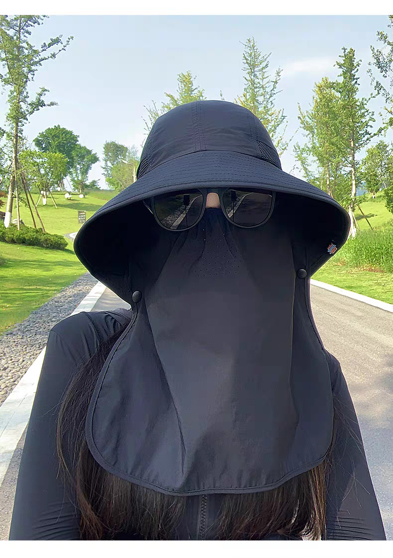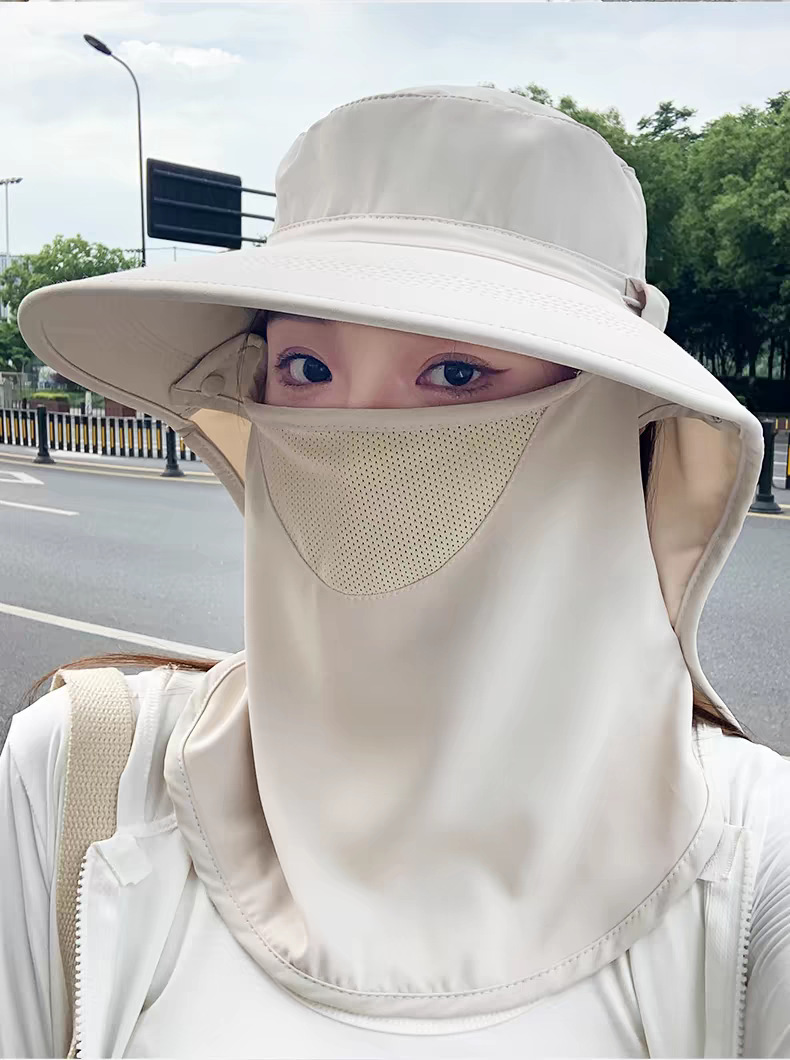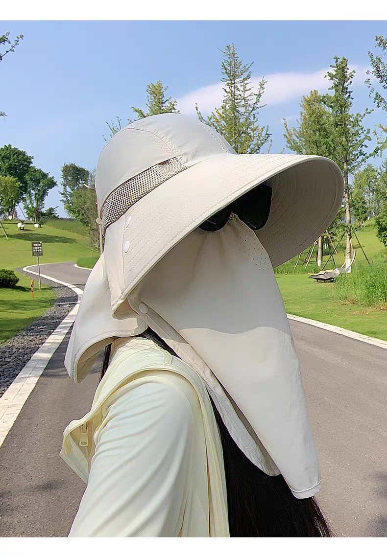 여름 모자 햇살 여성 여름 태양 보호 마스크 UV 보호 큰 Eave 얼굴 목 보호 사이클링 올 라운드 태양