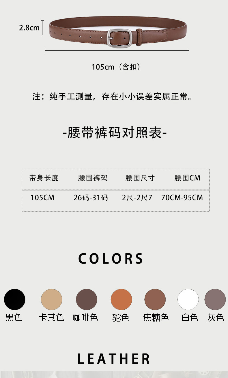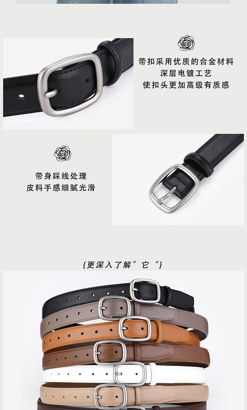 정품 가죽 벨트 여성 단순 올 매치 청바지 벨트 인 스타일 한국 캐주얼 금속 버클 학생 벨트 도매