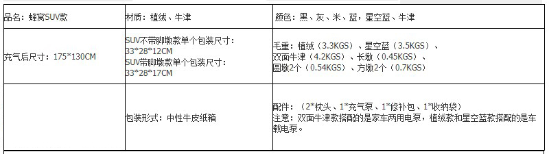 자동차 SUV 트렁크 팽창식 매트리스 자동차 후방 슬리핑 에어 쿠션 자동차 여행 침대 후면 플랫 매트