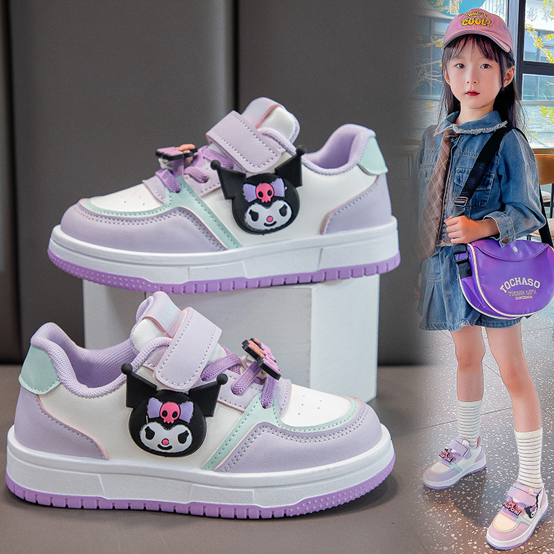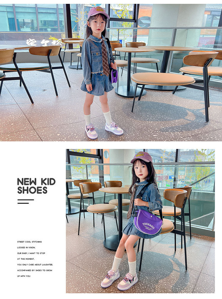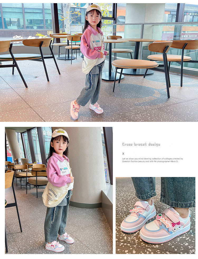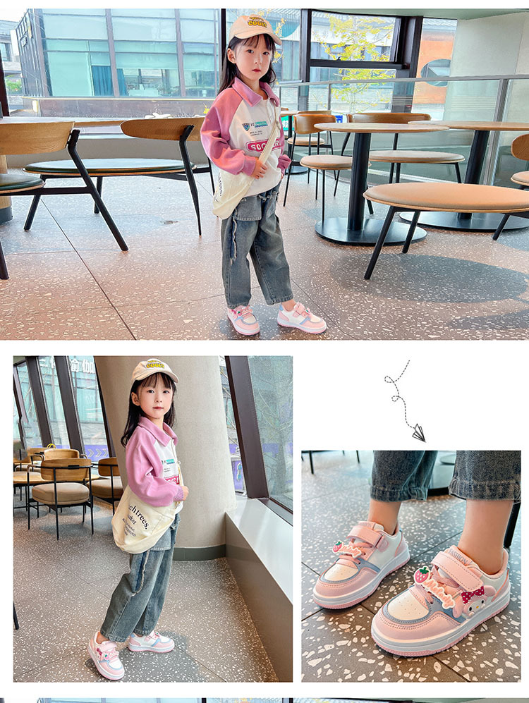신발 여아 운동화 가볍고 미끄럼 방지 통기성 좋은 초등학생 신발 벨크로 스트랩 흰색 신발 중소형 어린이용 봄 가을 스타일
