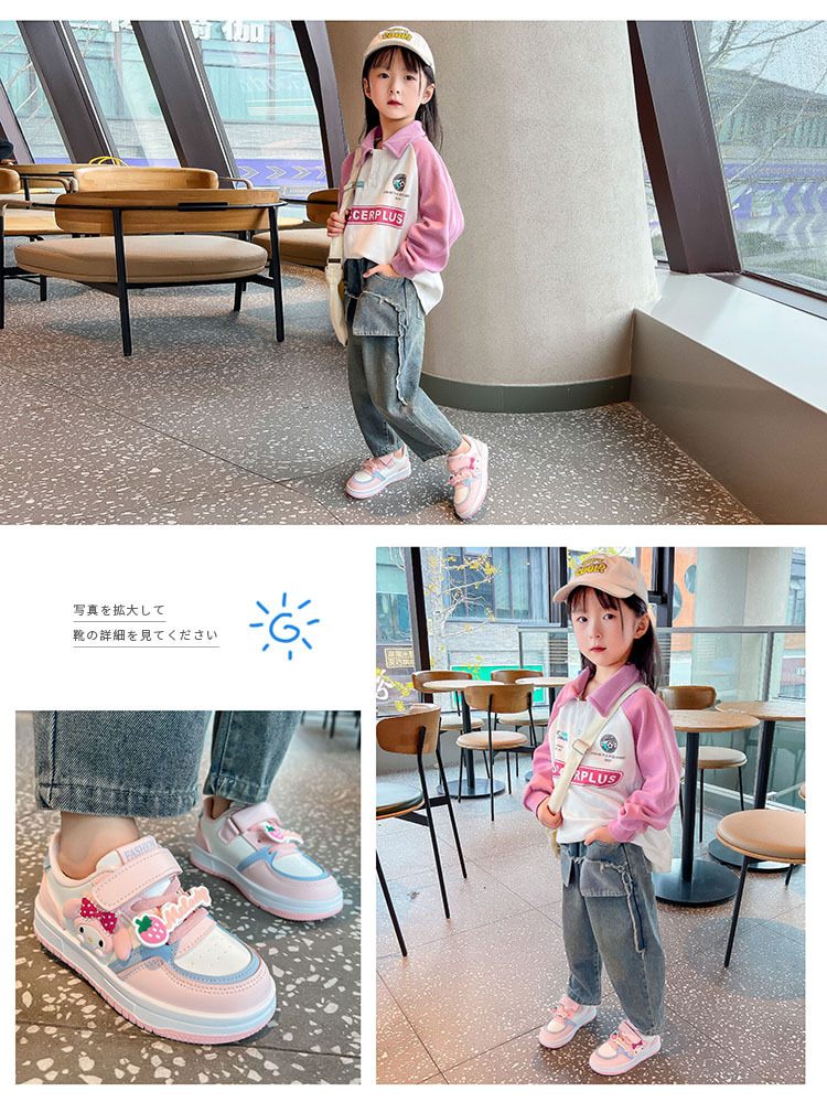 신발 여아 운동화 가볍고 미끄럼 방지 통기성 좋은 초등학생 신발 벨크로 스트랩 흰색 신발 중소형 어린이용 봄 가을 스타일스토어 가기